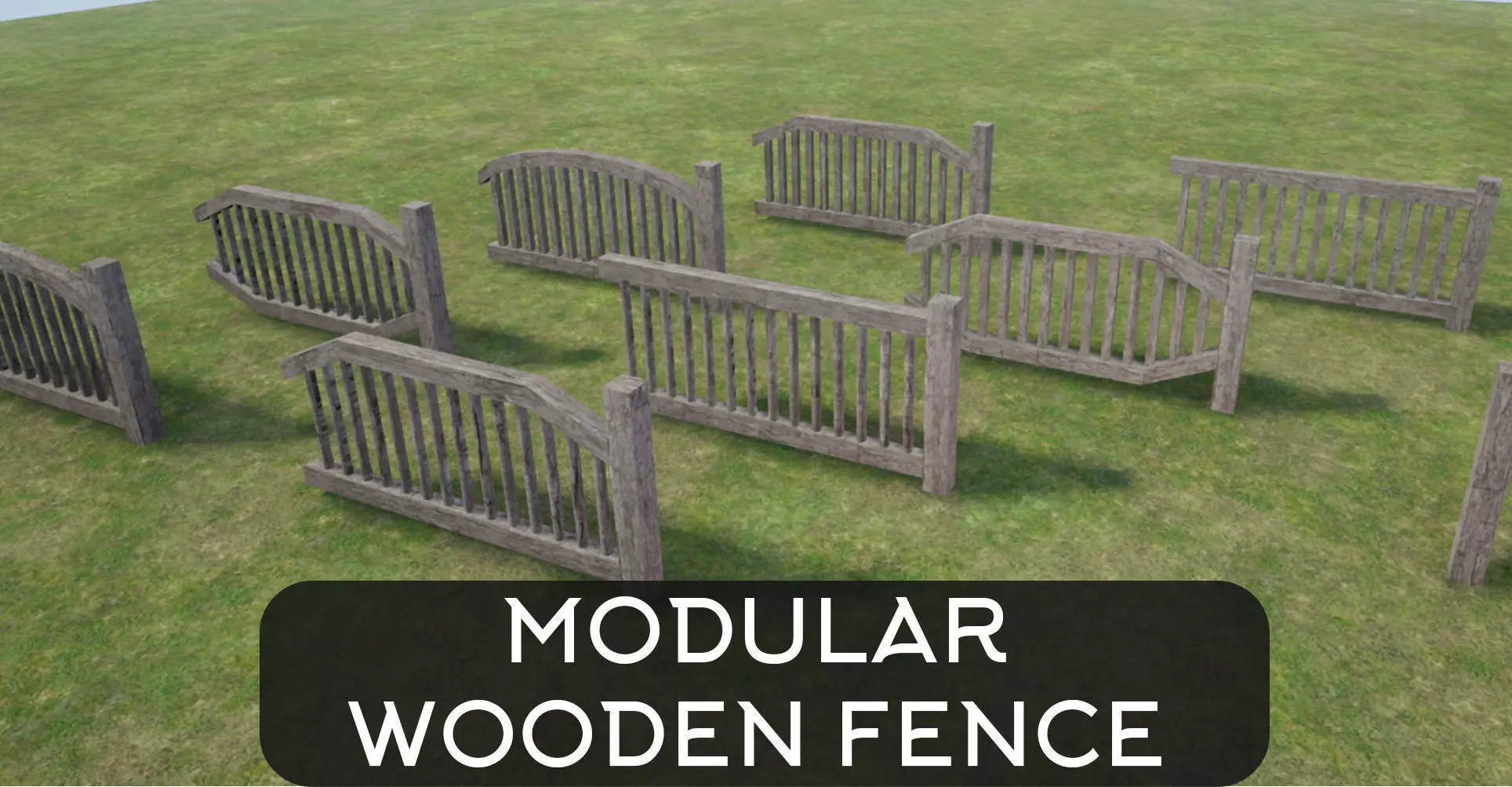 Modular Wooden Fence Low-poly 3D model