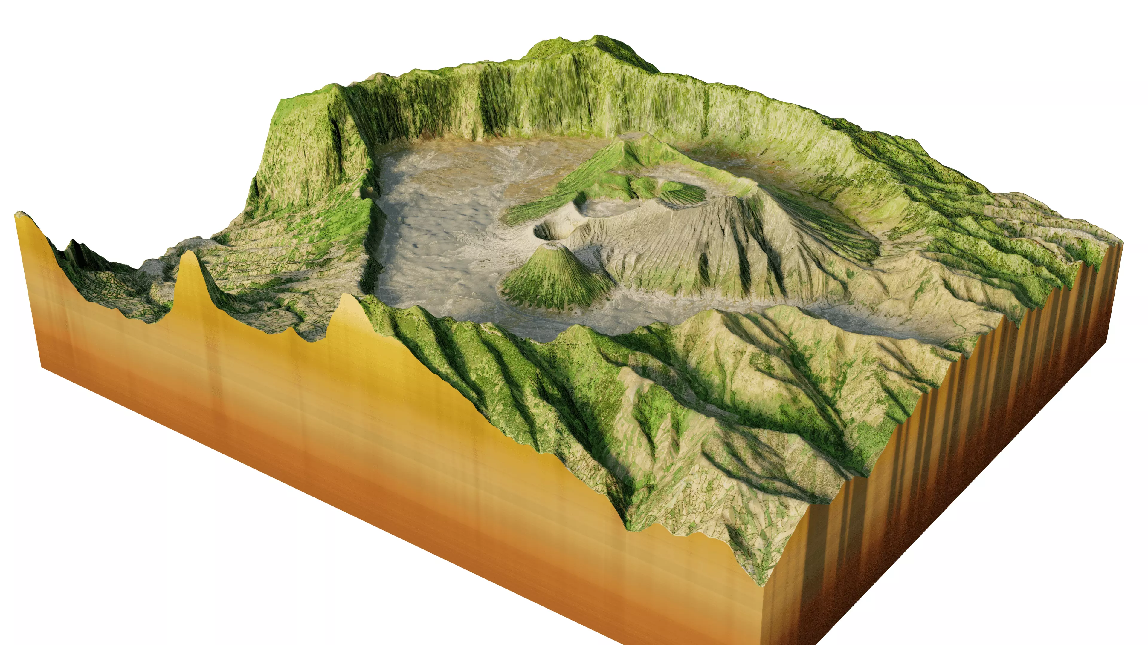 Mount Bromo 3d model terrain. 3d model landscape of the Mount Bromo