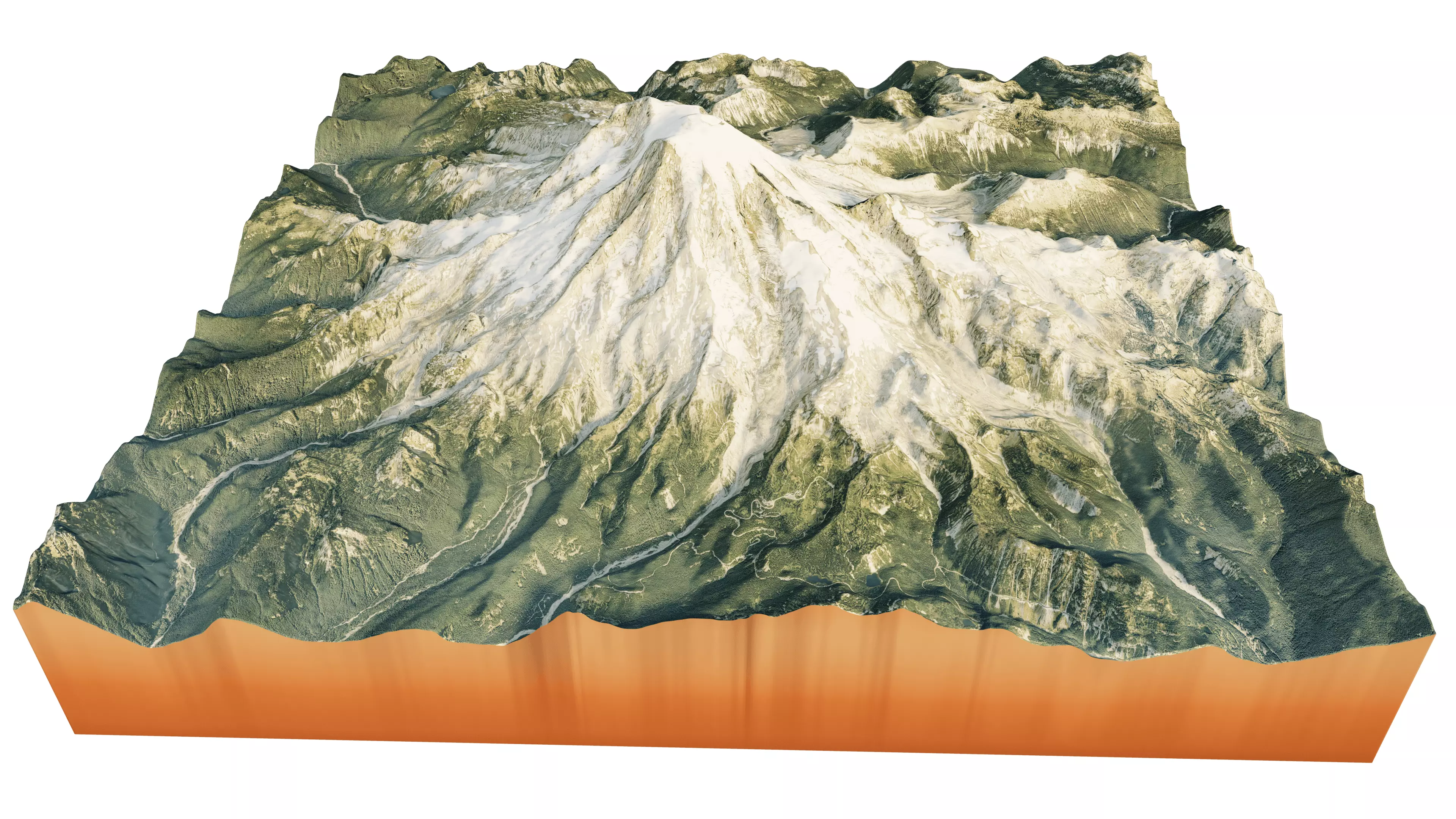 Rainier volcano 3d model terrain, Tahoma stratovolcano 3d landscape model