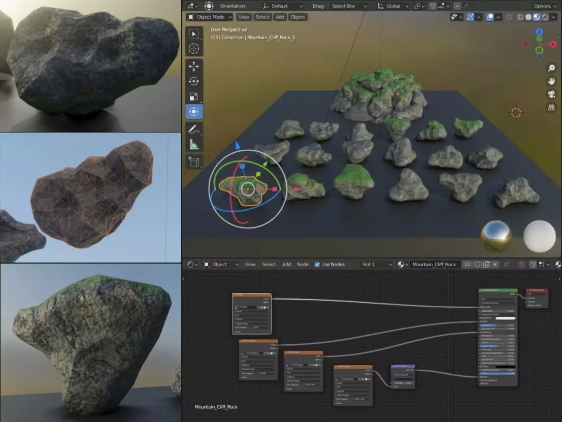 Here is a package of some low-poly mountain cliff rocks for your terrain.