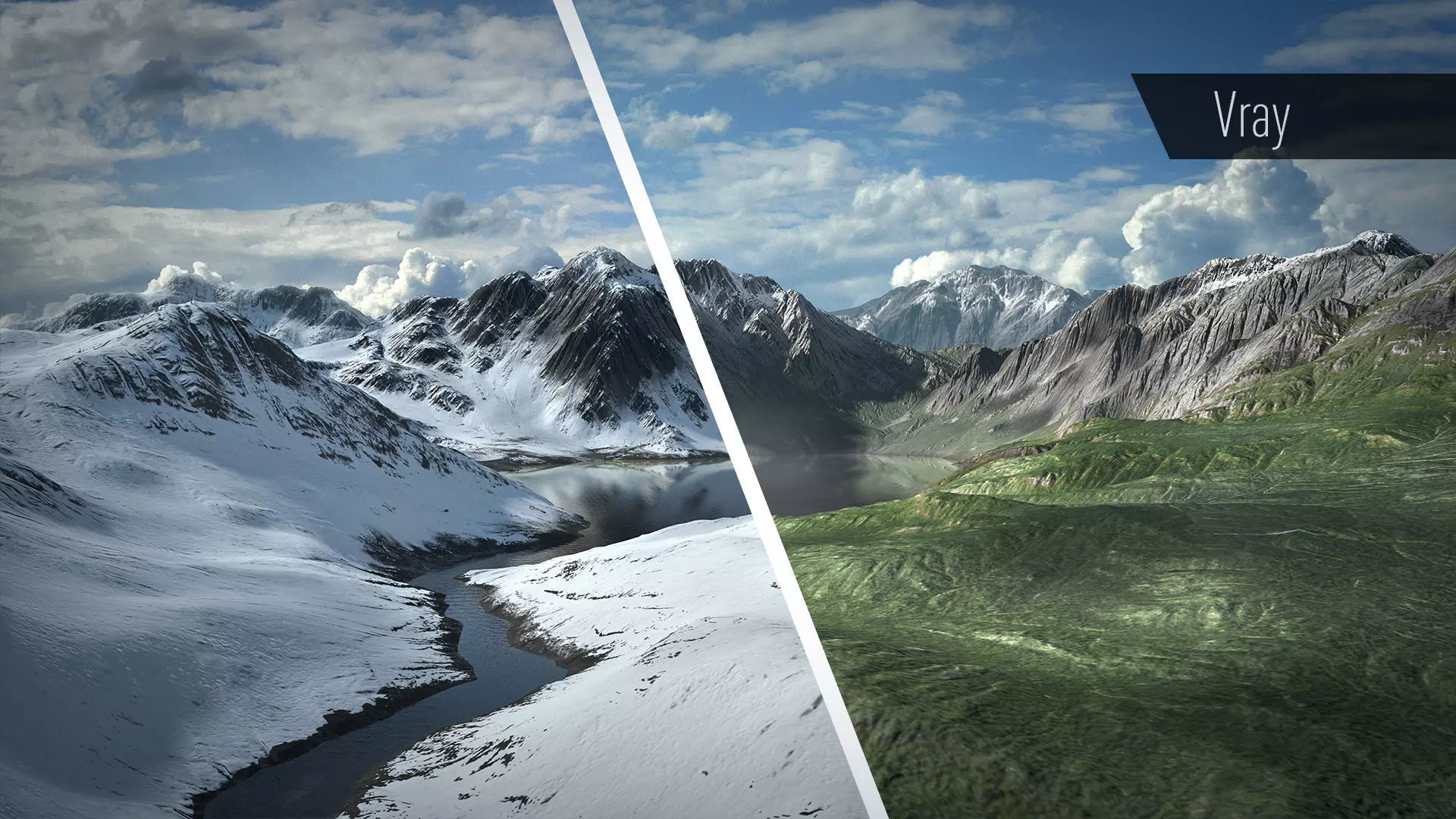The 3 cover pictures was rendered with Vray and composed with Nuke.The backgroundmountains are only copies.The other pictures was rendered with maya viewport 2.0