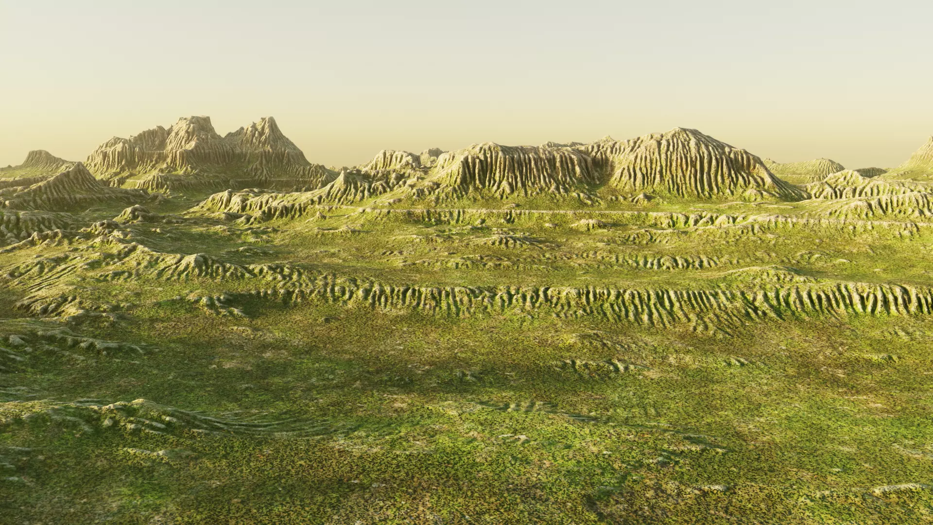 A natural mountain terrain 3D model built around dense green coverage and layered elevation, creating a rich and organic landscape suitable for large-scale environment scenes. The terrain features continuous surface variation with rolling ridges and sharper peaks, supported by high-resolution 8K textures. Its balanced mix of elevation and ground coverage makes it easy to use as a base for outdoor environments.