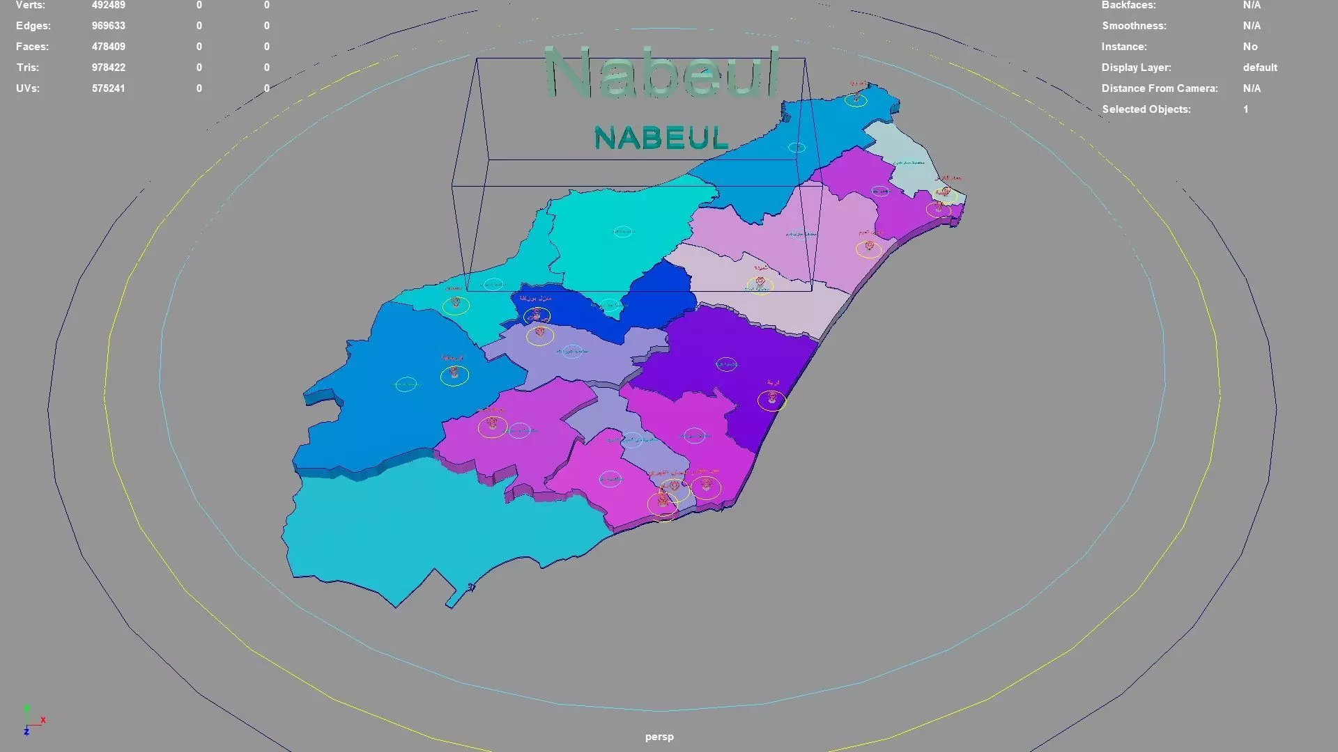 Nabeul regions : The model is divided according to the administrative region of Nabeul. Each region is clearly separated so you can easily isolate it or change the colors. Names are also editable and separate.