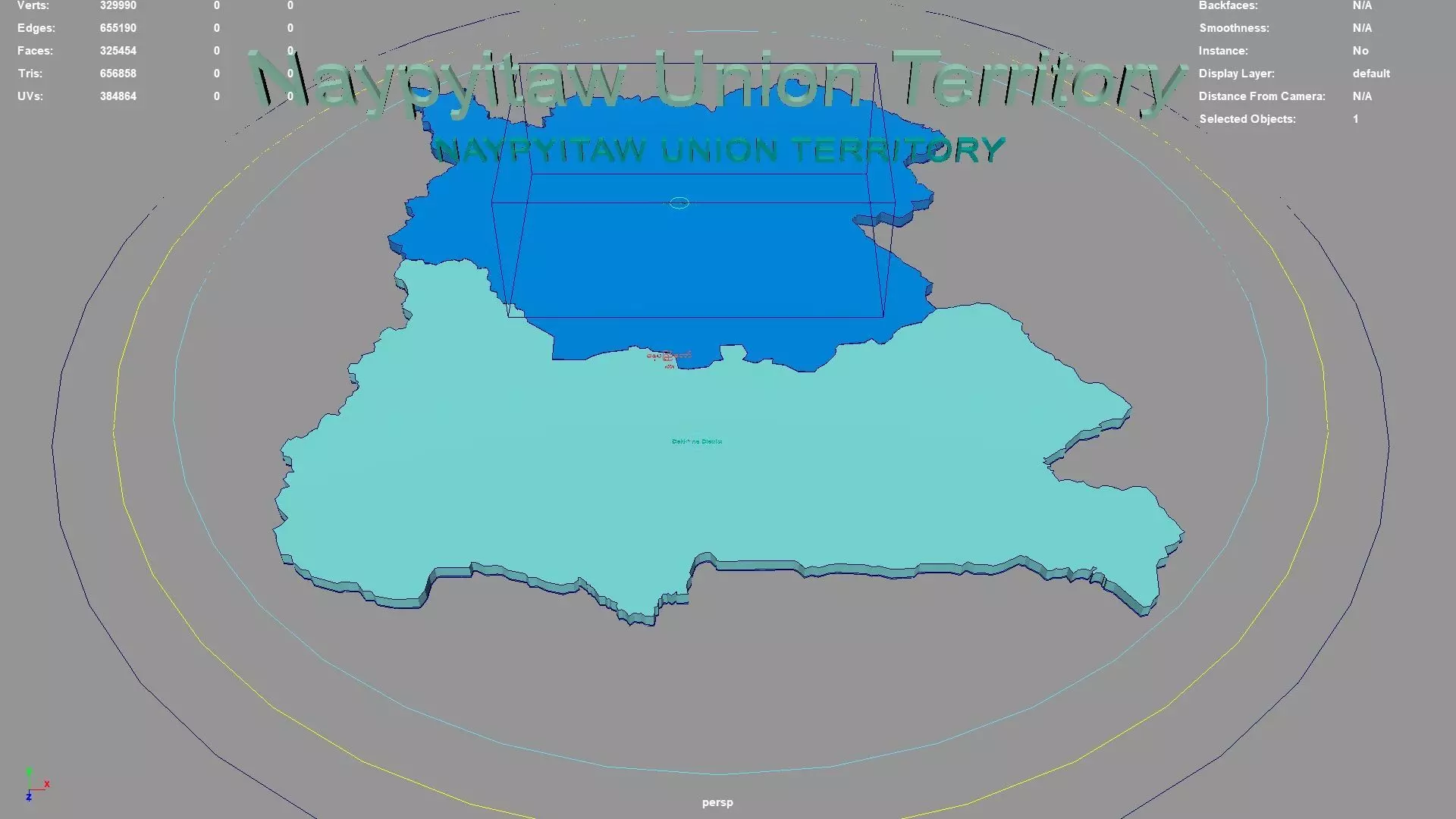 Naypyitaw Union Territory, Myanmar .map,region,geography,political,geographic,administrative division,city Landscape,3D model.