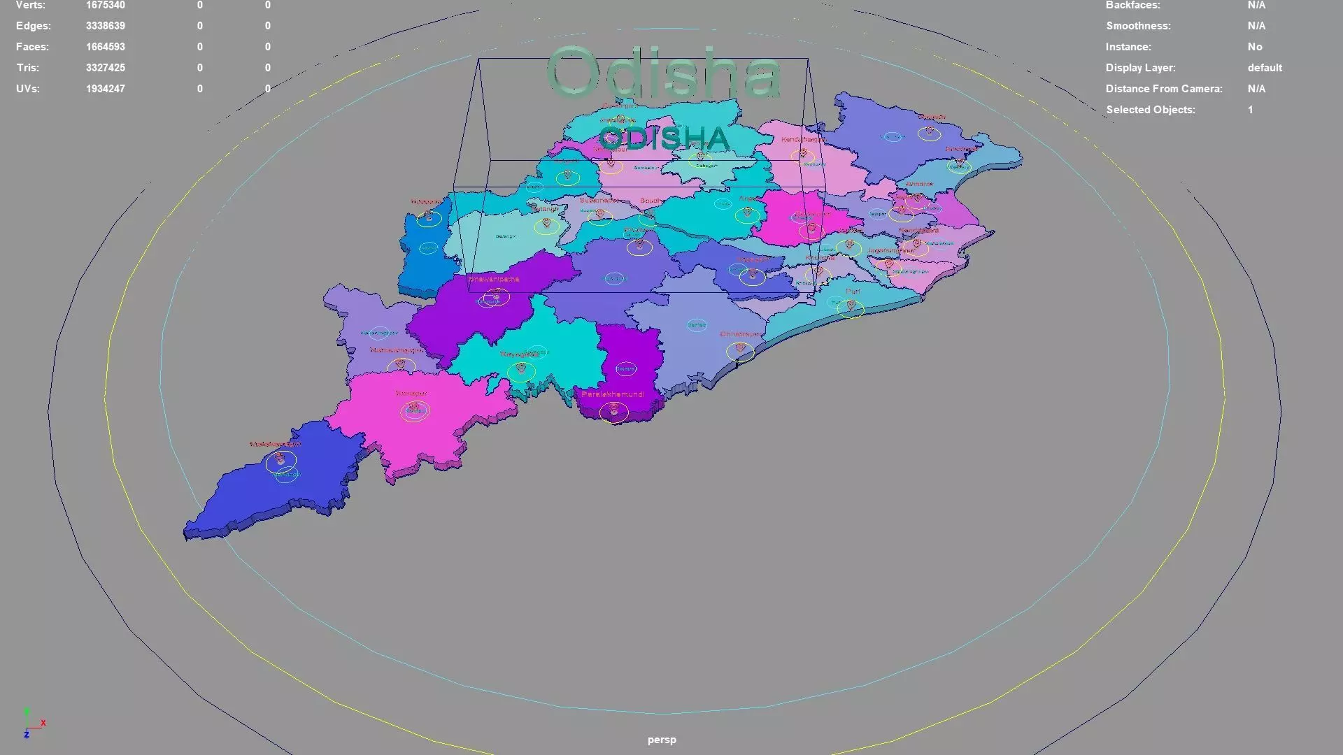Odisha regions : The model is divided according to the administrative region of Odisha. Each region is clearly separated so you can easily isolate it or change the colors. Names are also editable and separate.