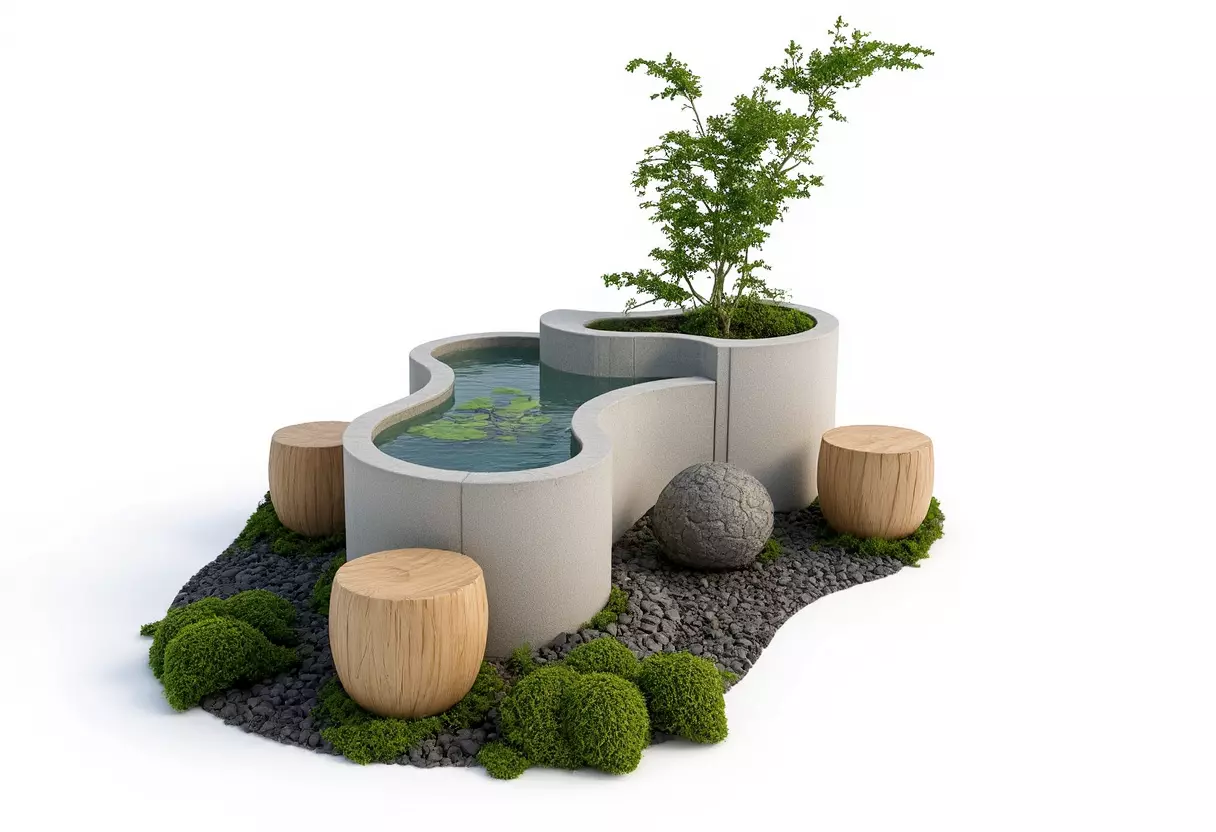 This is an ornamental pool model. It is in fbx, obj, sketchup, blender 3d formats. It is 5 m² wide and 75 cm high.