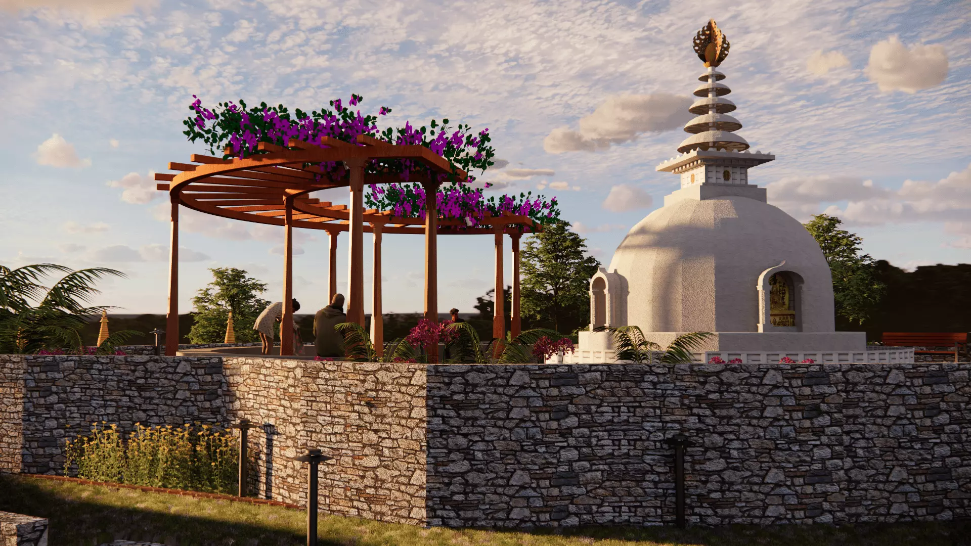 This is one of my Landscape project designed by myself in the contour land. The most of the elements used in the pard area buddhist elements like Stupas and Chaityas. This park is located in the core area of the busy city so this creates some peaceful environment for people to roam and sit in the evening areas. The population attracted by the park are most of elders like grandparents as well as the couples. The park create the space to spend quality time amid the busy schedule in the city.