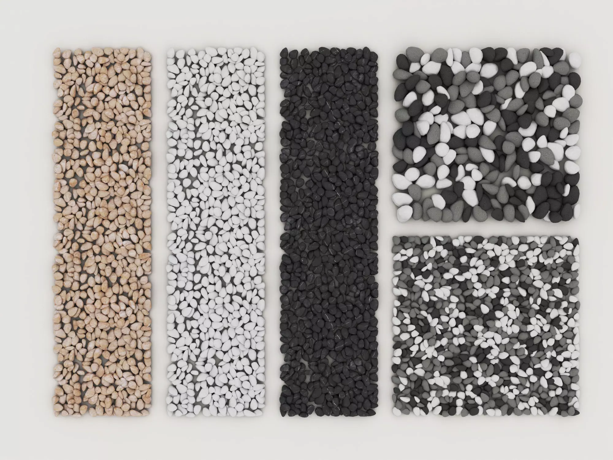 Mixed black, white, and gray pebble combinations