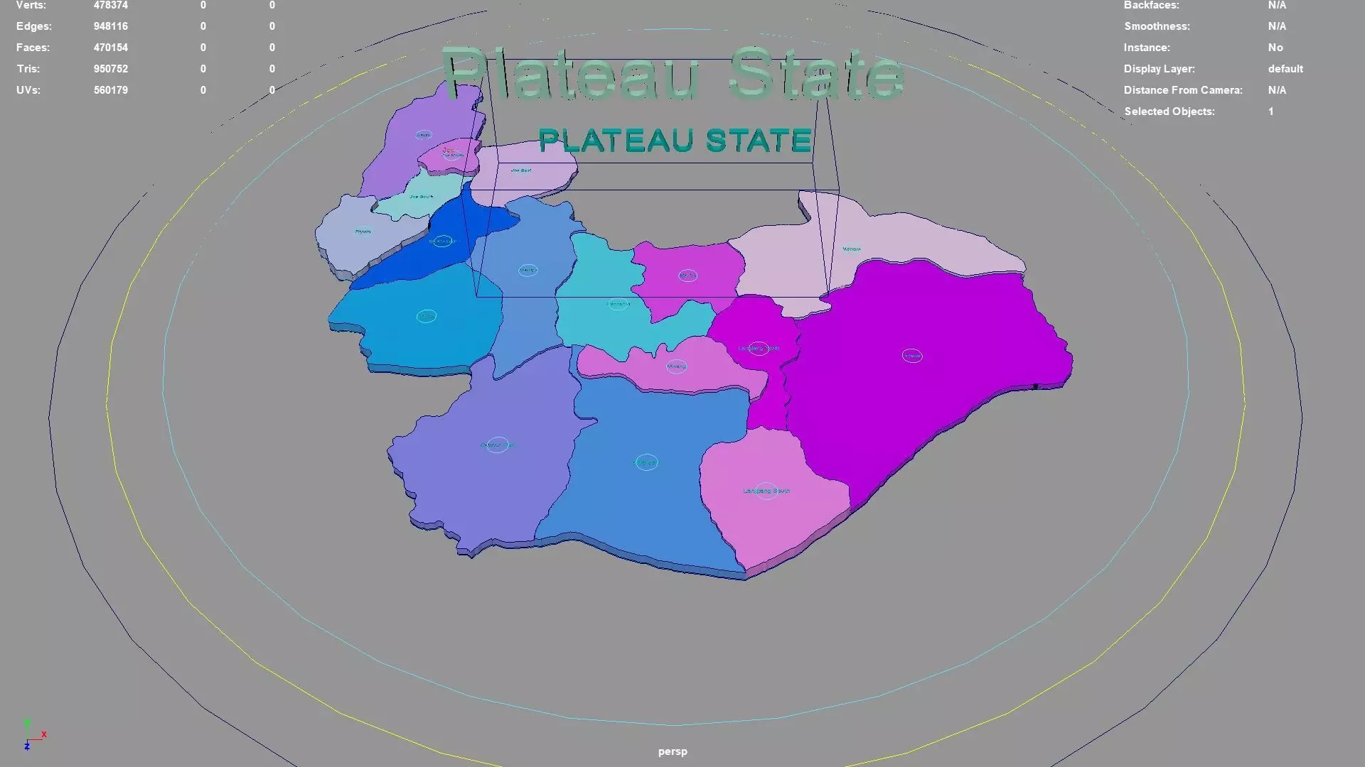 Plateau State regions : The model is divided according to the administrative region of Plateau State. Each region is clearly separated so you can easily isolate it or change the colors. Names are also editable and separate.