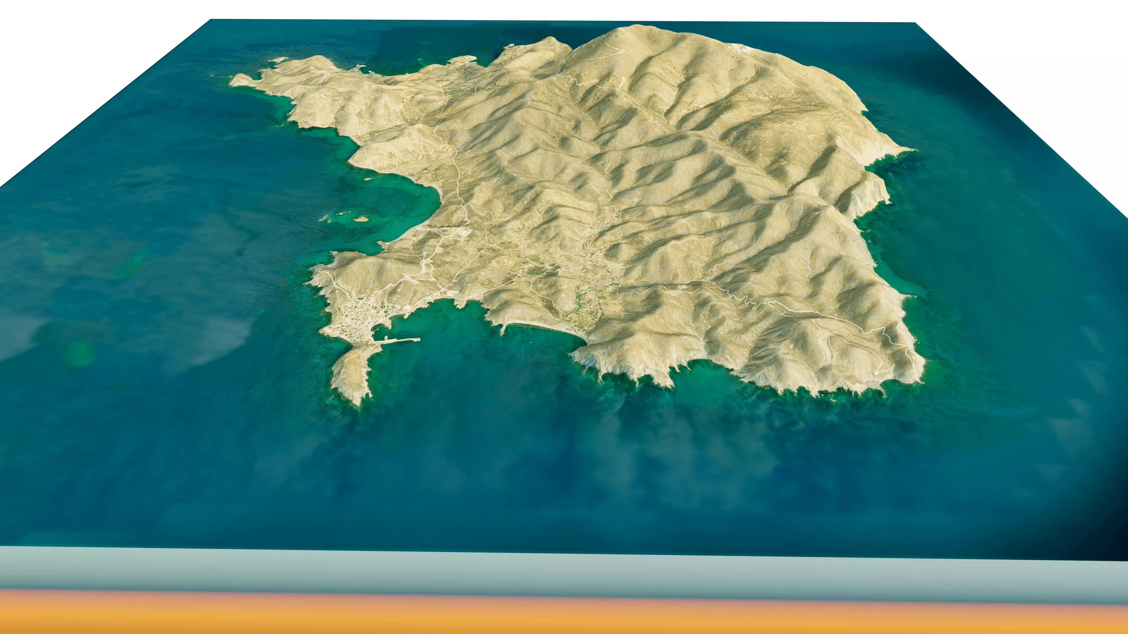 Psara Island 3D model terrain. 3d model island of Psara, Greece with its landscape of mountains, beaches and forests.