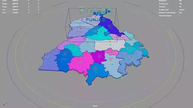 Punjab regions : The model is divided according to the administrative region of Punjab. Each region is clearly separated so you can easily isolate it or change the colors. Names are also editable and separate.