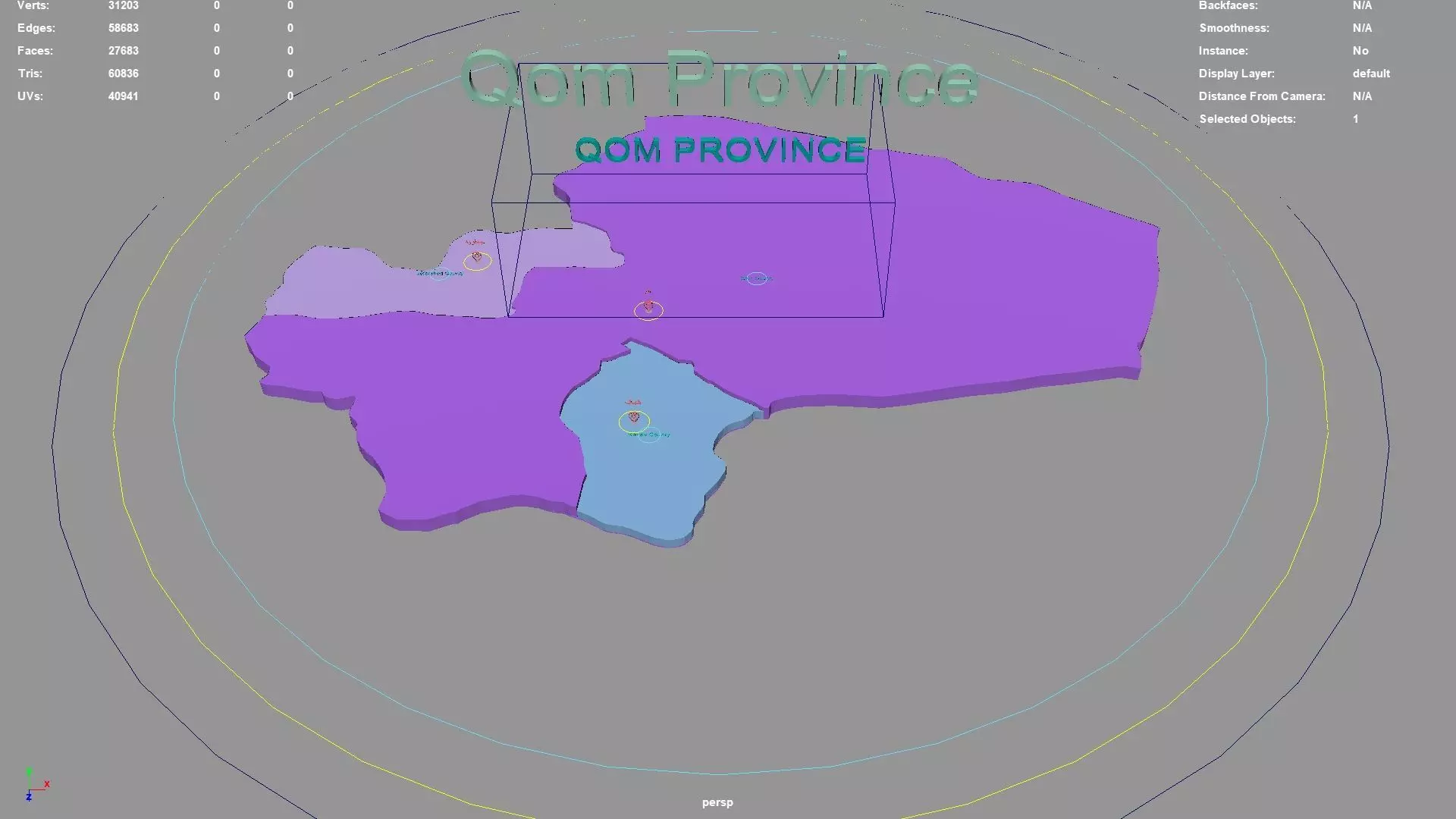 Qom Province regions : The model is divided according to the administrative region of Qom Province. Each region is clearly separated so you can easily isolate it or change the colors. Names are also editable and separate.