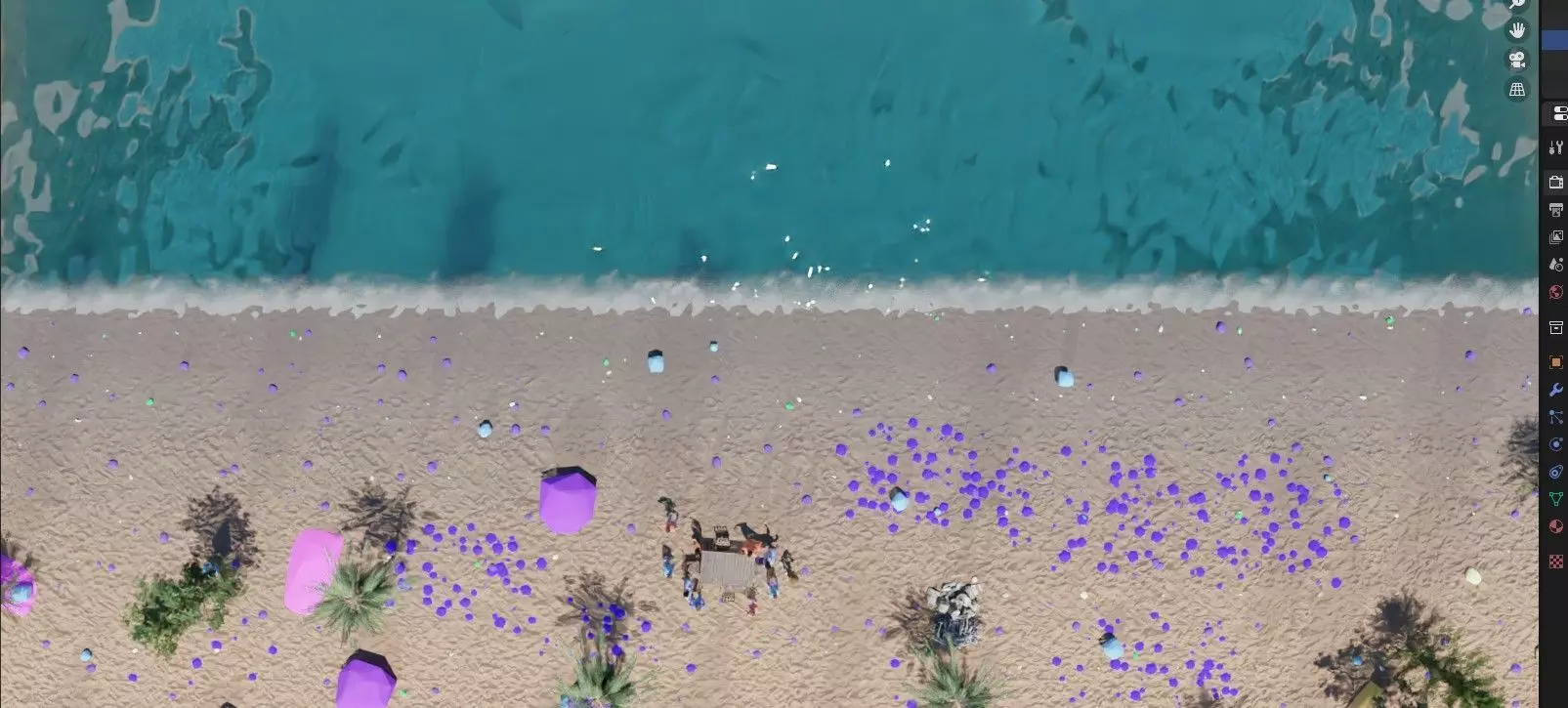 The model should have around 400,000 polygons to achieve a realistic look. You can reduce or increase the polygon count by changing the subdivision levels or adding more details. You can also use different textures or colors to create different types of beaches, such as tropical, rocky, or snowy.