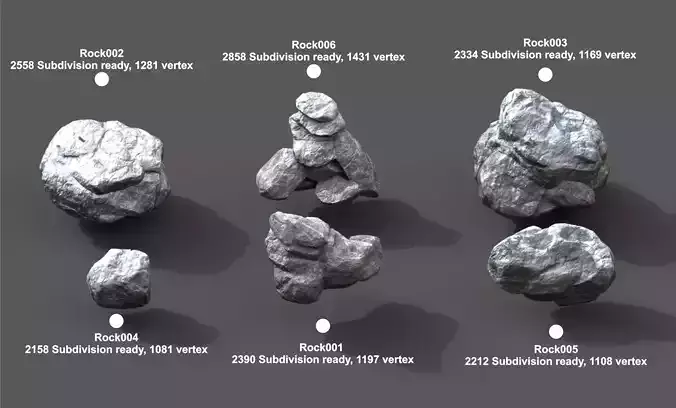Rock001 : 2390 Subdivision ready, 1197 vertex : Yes Render engine : Cycles render