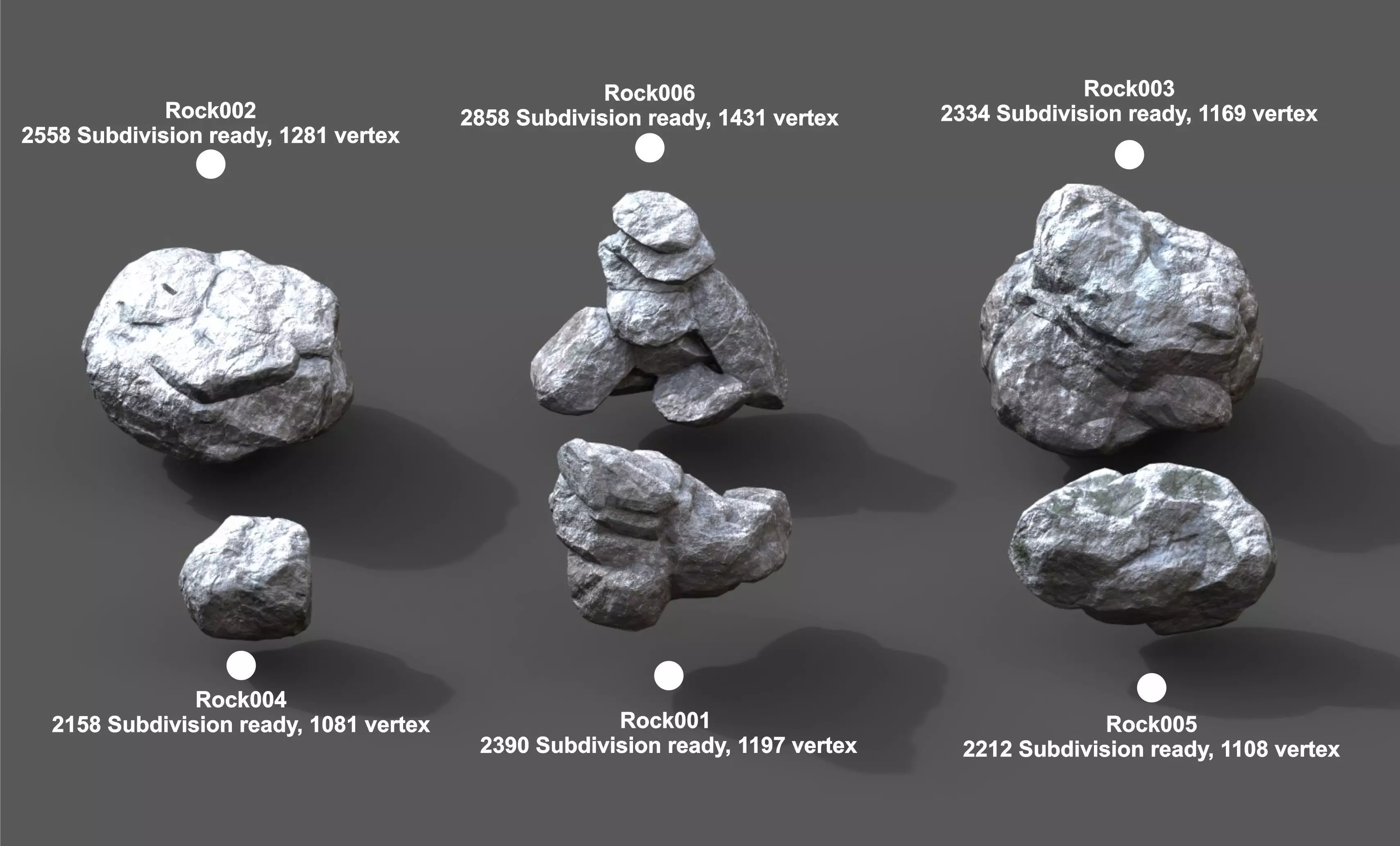 Rock006 : 2858 Subdivision ready, 1431 vertex : Yes Render engine : Cycles render