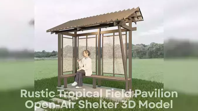A small open-air pavilion designed with a modern vernacular touch—perfect for parks, resorts, farms, bus stops, or tropical public spaces.This 3D model features a lightweight steel frame, slanted roof structure, and woven-style perforated metal screens that filter light beautifully. The form is simple, durable, and optimized for outdoor scenes, architectural visualizations, and game environments.