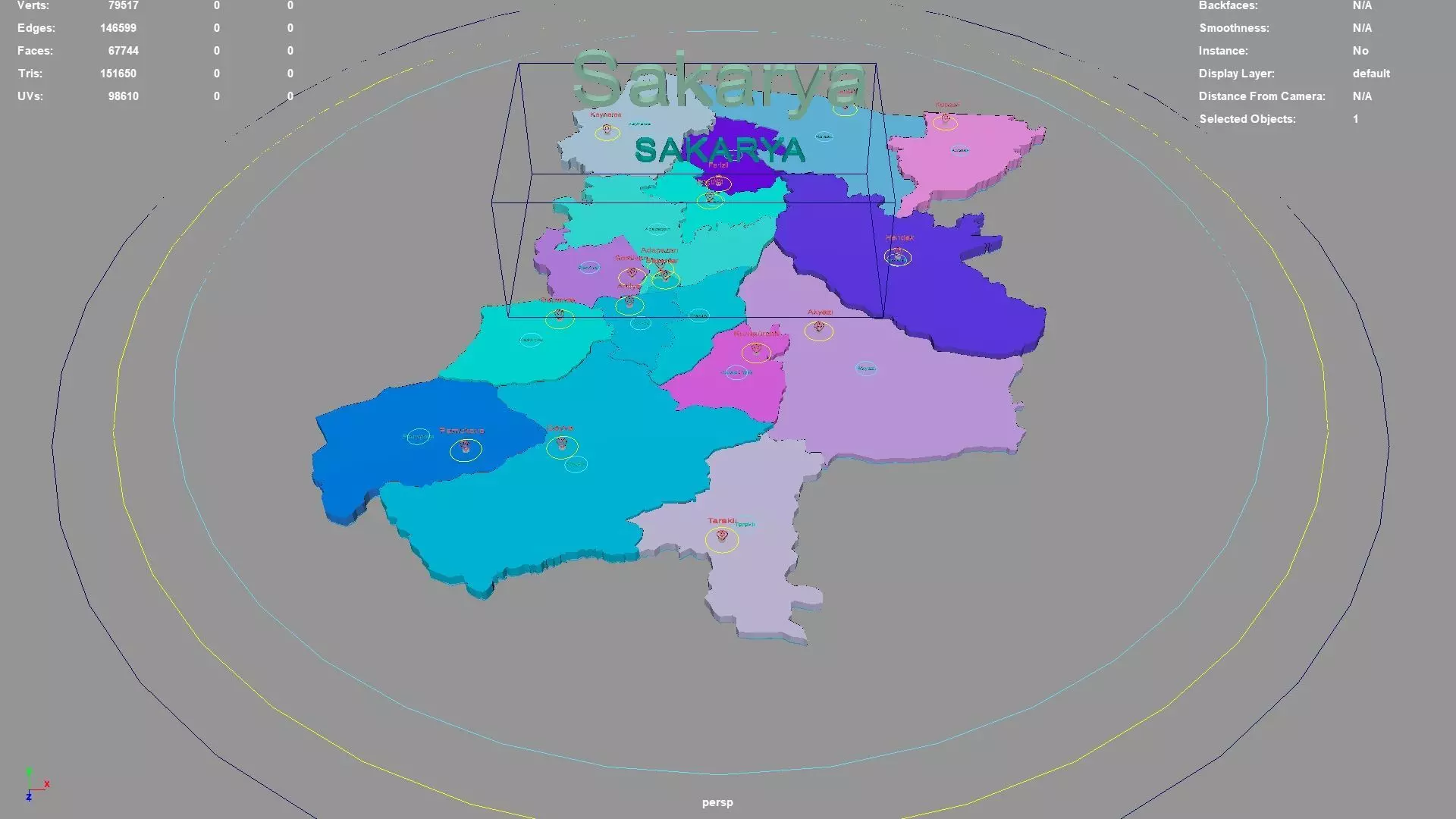 Sakarya regions : The model is divided according to the administrative region of Sakarya. Each region is clearly separated so you can easily isolate it or change the colors. Names are also editable and separate.
