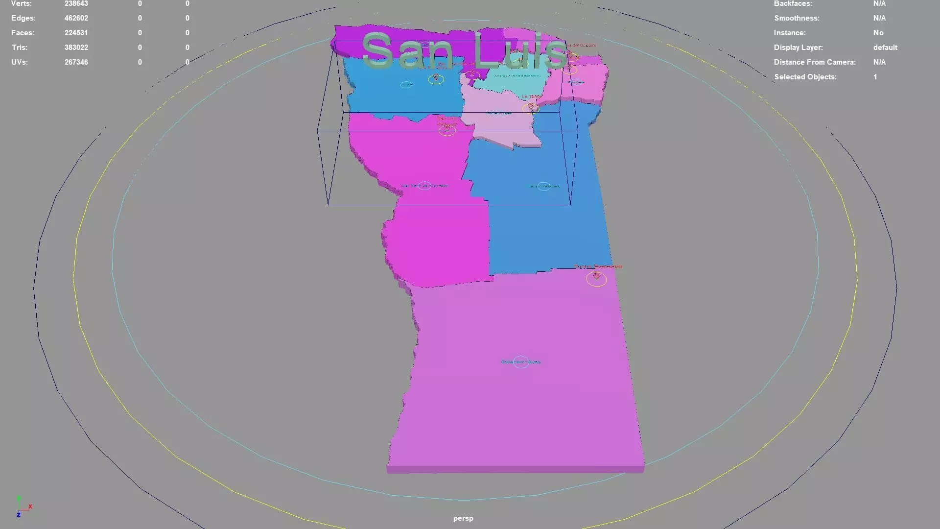 San Luis regions : The model is divided according to the administrative region of San Luis. Each region is clearly separated so you can easily isolate it or change the colors. Names are also editable and separate.