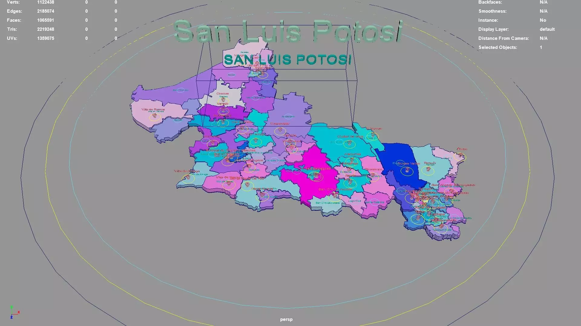 San Luis Potosi regions : The model is divided according to the administrative region of San Luis Potosi. Each region is clearly separated so you can easily isolate it or change the colors. Names are also editable and separate.