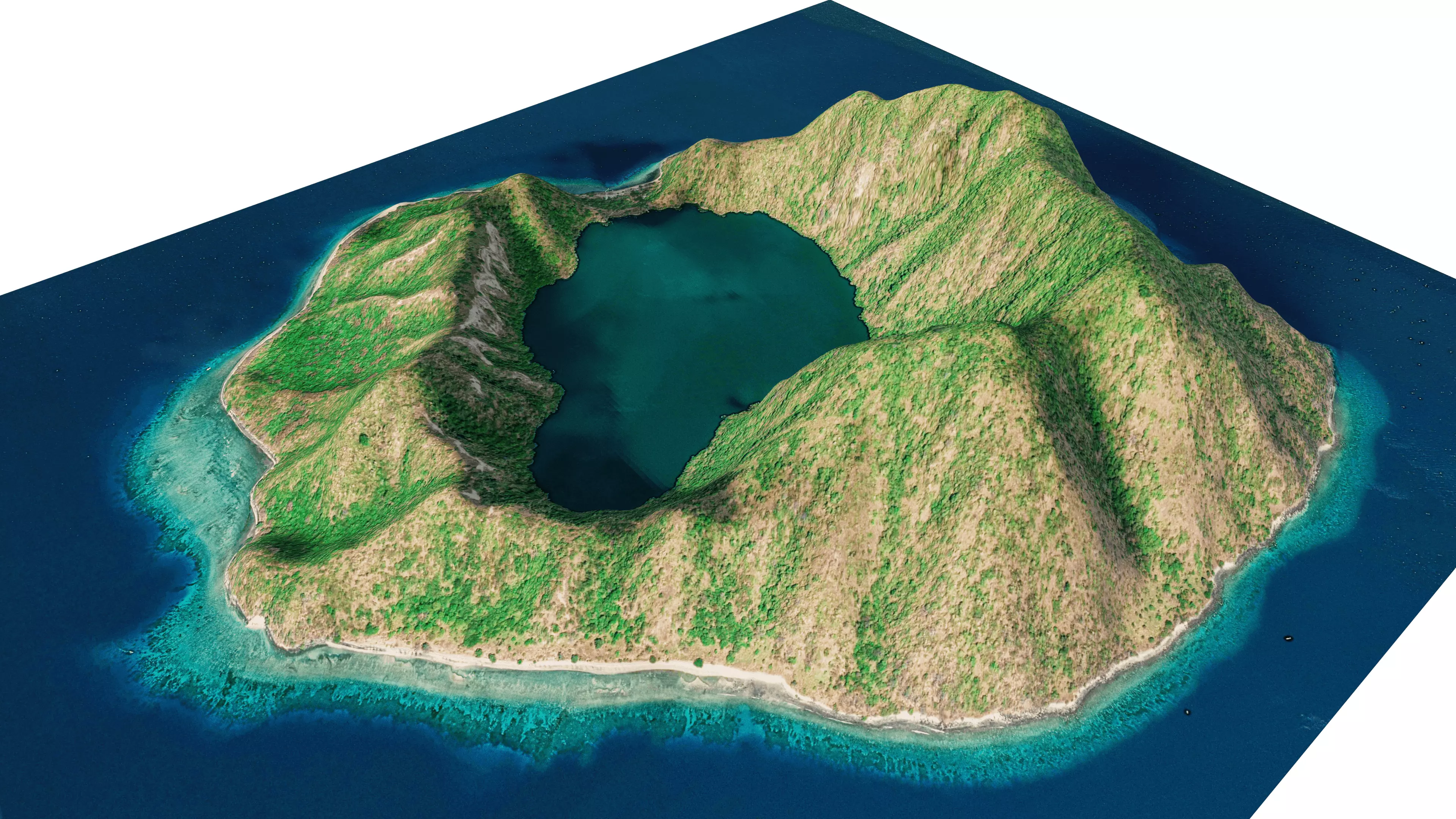 Satonda Island 3d Model Terrain. 3d model landscape of the Satonda Island with its landscape of mountains, beaches and forests and lake.