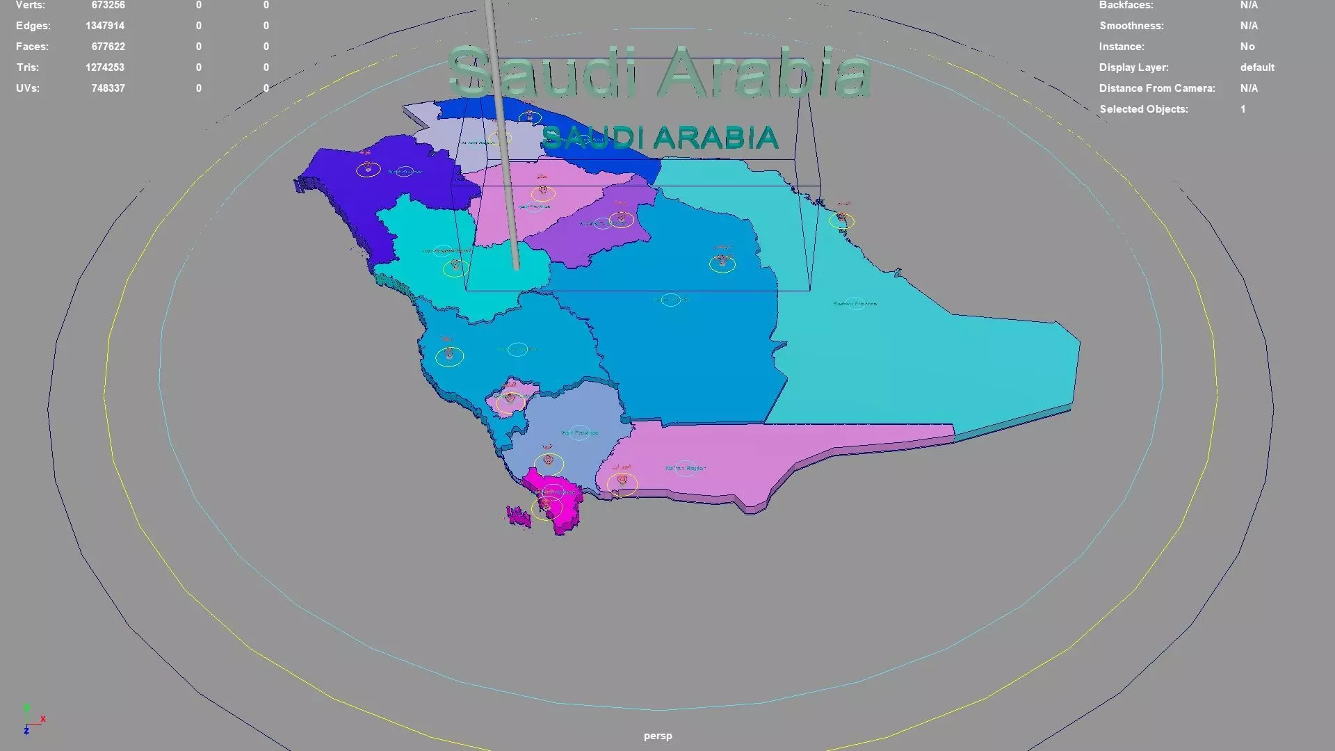 Saudi Arabia regions : The model is divided according to the administrative region of Saudi Arabia. Each region is clearly separated so you can easily isolate it or change the colors. Names are also editable and separate.