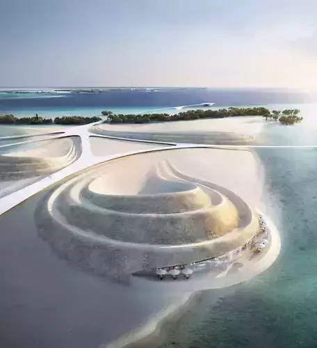 Sculpted Coastal Dune Landscape with Seafront Walkways 3D model