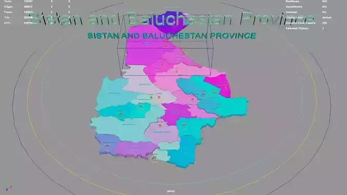 Sistan and Baluchestan Province regions : The model is divided according to the administrative region of Sistan and Baluchestan Province. Each region is clearly separated so you can easily isolate it or change the colors. Names are also editable and separate.