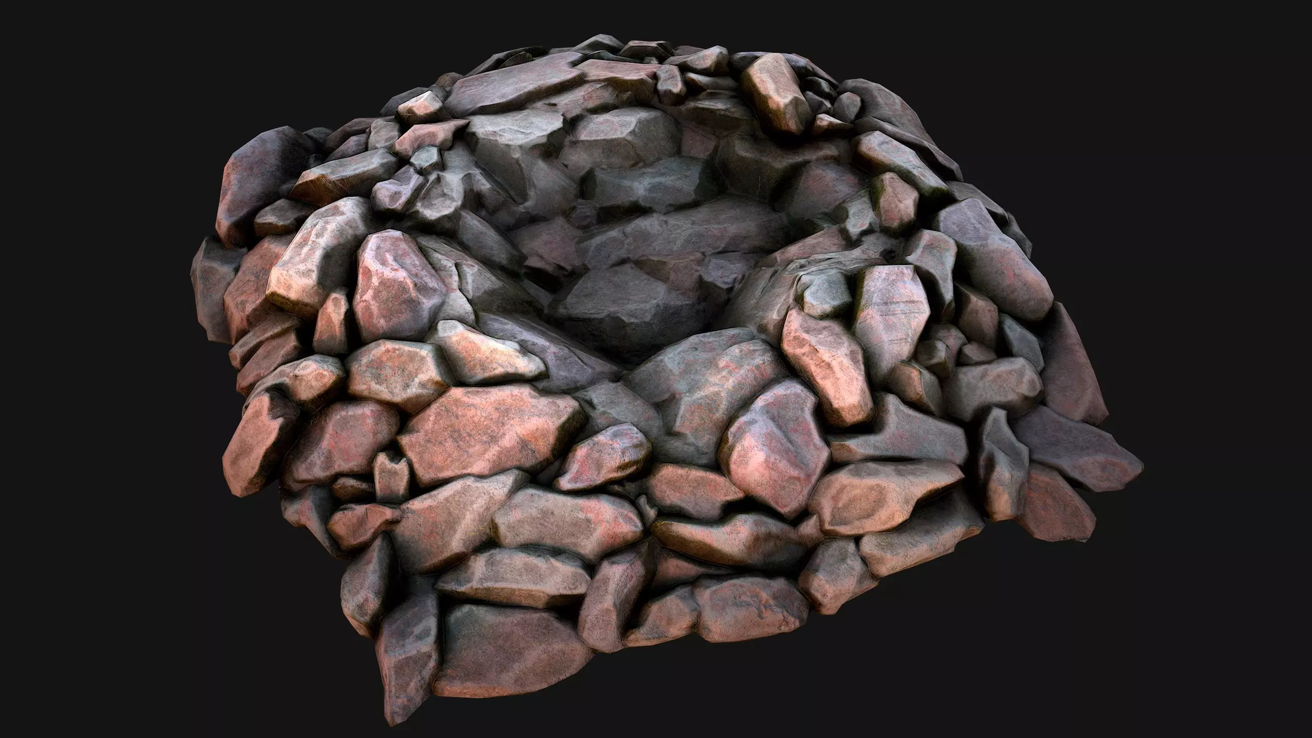 Game ready model.Stylized and detailed Pile of Rocks 1 fully textured, sculpted and rendered with Physical based rendering (PBR) - Shown images have been rendered in Marmoset Toolbag .The models contains lods, detailed information on the images.