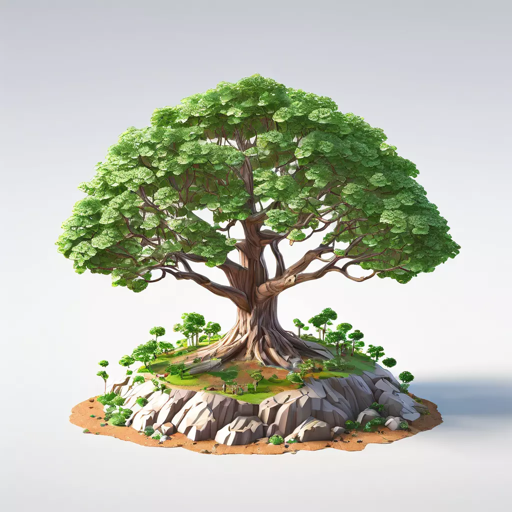 This 3D model presents a stylized giant tree on a small island diorama, perfect for adding a touch of fantasy to your projects. Ideal for game development, especially in stylized or cartoonish settings, it can also be used in AR/VR experiences, digital art, and even 3D printing. The model comes in multiple formats, including FBX, OBJ, GLB, and STL, ensuring compatibility with various software. Optimized for real-time applications with a low-poly count, it still maintains a high level of detail thanks to its efficient topology and stylized design. It's UV unwrapped and includes PBR textures, bringing the scene to life with vibrant colors and realistic lighting. The island base features miniature trees, fences, and subtle details, enhancing the overall diorama effect. Whether you're crafting a whimsical game level or a captivating illustration, this model is a versatile asset that is sure to impress. The model is ready to be imported into your project with minimal setup required. The tree's leaves and branches have a distinct, stylized look, making it stand out in any scene.