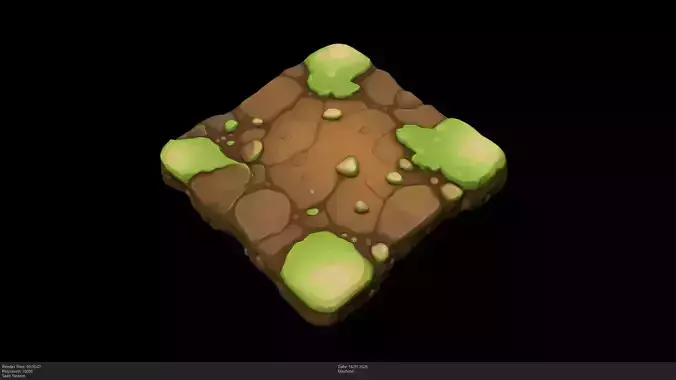 Stylized Mossy Stone Floor / Overgrown Ruins TileThis is a high-quality, stylized 3D model of a mossy stone floor tile. Featuring weathered stone slabs partially covered by vibrant green moss patches, this model is perfect for ancient ruins, overgrown temple paths, damp dungeon floors, or as a modular ground segment in fantasy RPGs and adventure games.