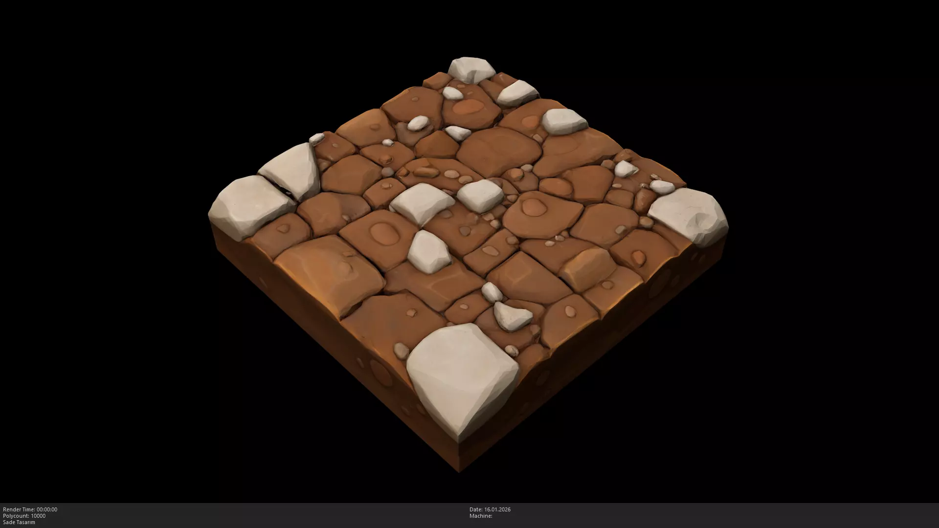 Game-Ready Optimization: Efficiently modeled with 10,000 polygons, capturing the rounded edges and surface variations of the stones while remaining perfectly performance-friendly for real-time engines.