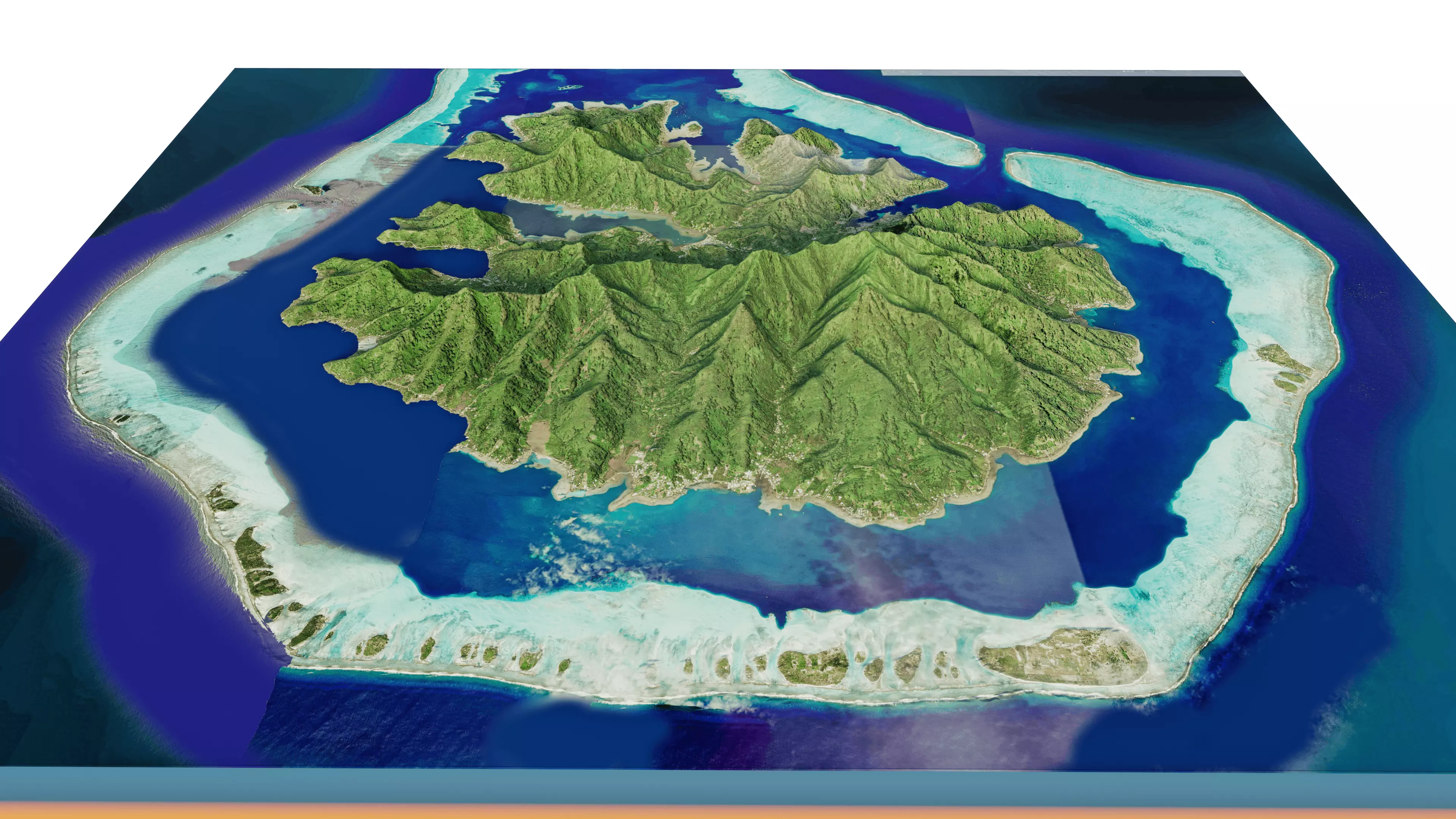 Taha'a island full 3d terrain. 3d model landscape of the island of Taha'a with its landscape of mountains, beaches and forests