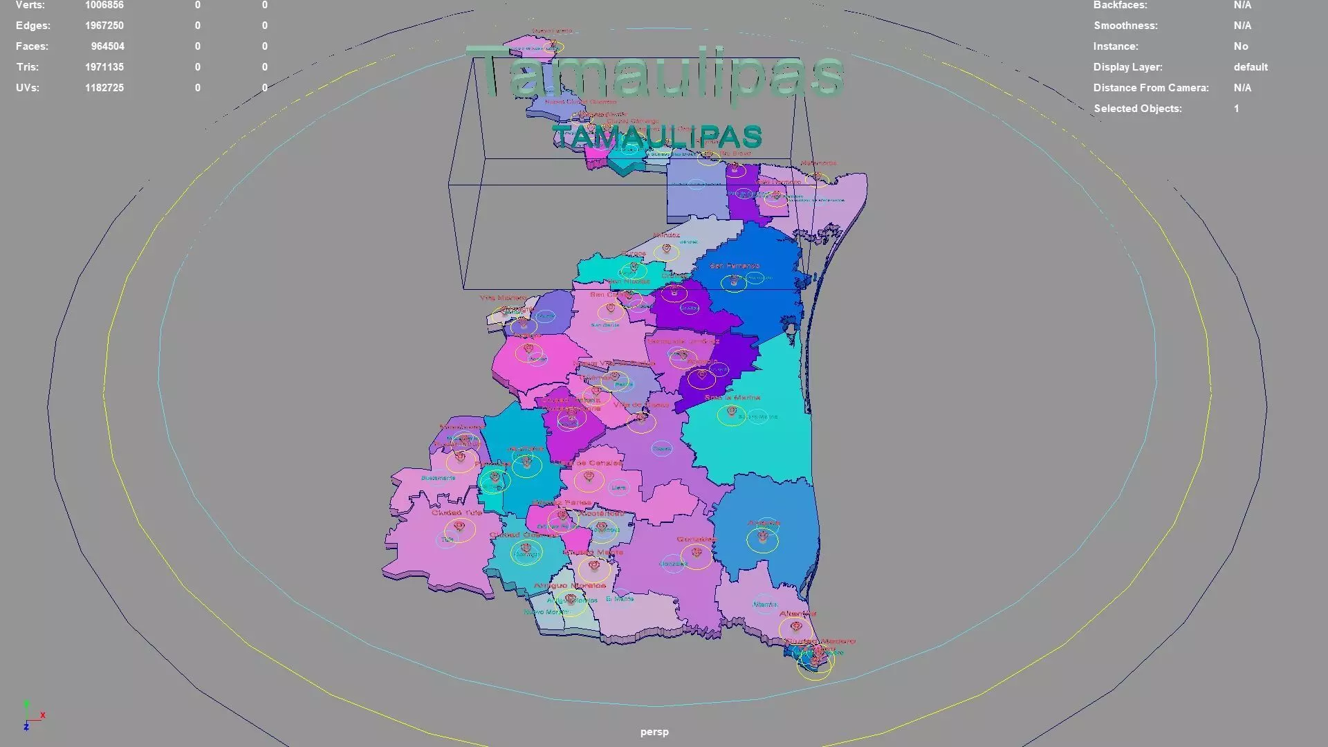 Tamaulipas regions : The model is divided according to the administrative region of Tamaulipas. Each region is clearly separated so you can easily isolate it or change the colors. Names are also editable and separate.