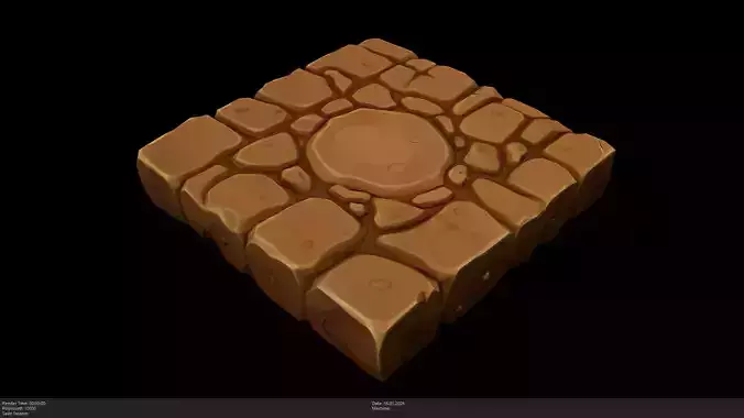 Terracotta Brick Path This is a high-quality, stylized 3D model of a mud brick floor tile. Featuring warm, hand-sculpted clay bricks arranged in a circular pattern around a central flat stone, this model is perfect for desert villages, ancient temples, Mediterranean courtyards, or as a modular ground segment in fantasy RPGs.