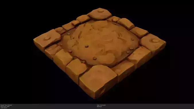 Stylized Adobe Floor Tile / Terracotta Brick PathThis is a high-quality, stylized 3D model of a mud brick floor tile. Featuring warm, hand-sculpted clay bricks arranged in a circular pattern around a central flat stone, this model is perfect for desert villages, ancient temples, Mediterranean courtyards, or as a modular ground segment in fantasy RPGs.