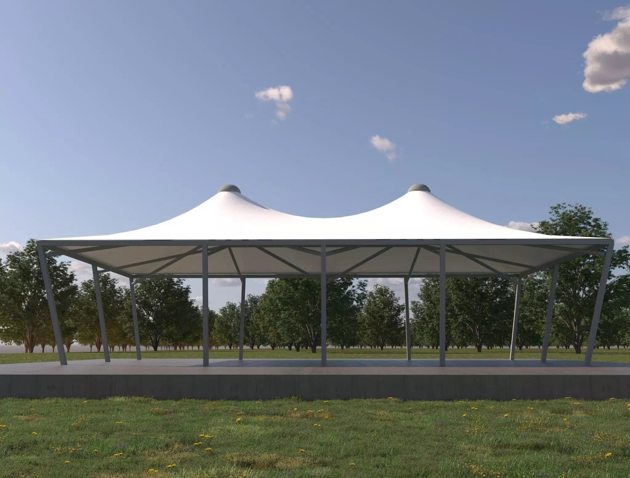 This is a architectural Tensile Membrane Shade Structure.3ds Max 2023 and Vray6.The plan area is 12.1x7.11m and height is 4.64m