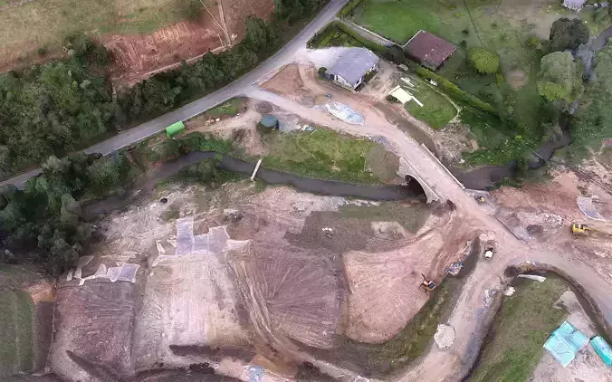 Immerse yourself in a stunning and highly-detailed digital reconstruction of the Pantanillo River, a small but vital waterway that feeds the La Fé dam and provides a crucial backup source of water during the dry season for Medellin city and its surroundings. This incredible 3D model, created using high-resolution RGB sensors on a multirotor UAV system, captures an area of approximately 0.15 square kilometers, including a new access bridge, earthworks machinery, and the Senderos De el Retiro real estate development. With an altitude level of 60m AGL (2370m/7776ft AMSL) and a 15-minute time aloft, the model offers unparalleled accuracy and realism, making it an ideal tool for exploration, education, and planning. Whether you're a student, researcher, or simply curious about the natural and man-made wonders of this beautiful region, this digital reconstruction is sure to captivate the river's importance while also highlighting its unassuming nature.