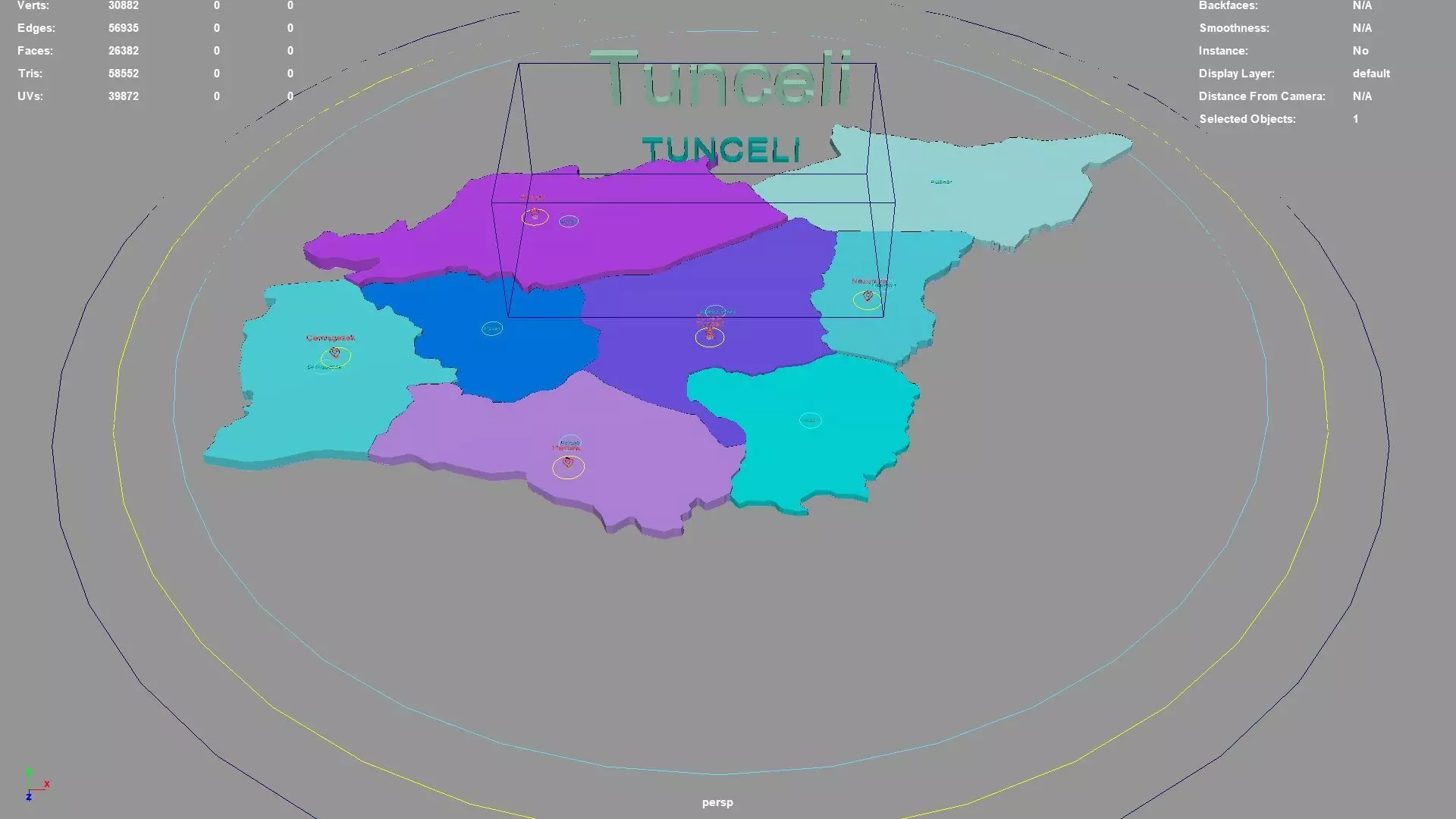 Tunceli regions : The model is divided according to the administrative region of Tunceli. Each region is clearly separated so you can easily isolate it or change the colors. Names are also editable and separate.