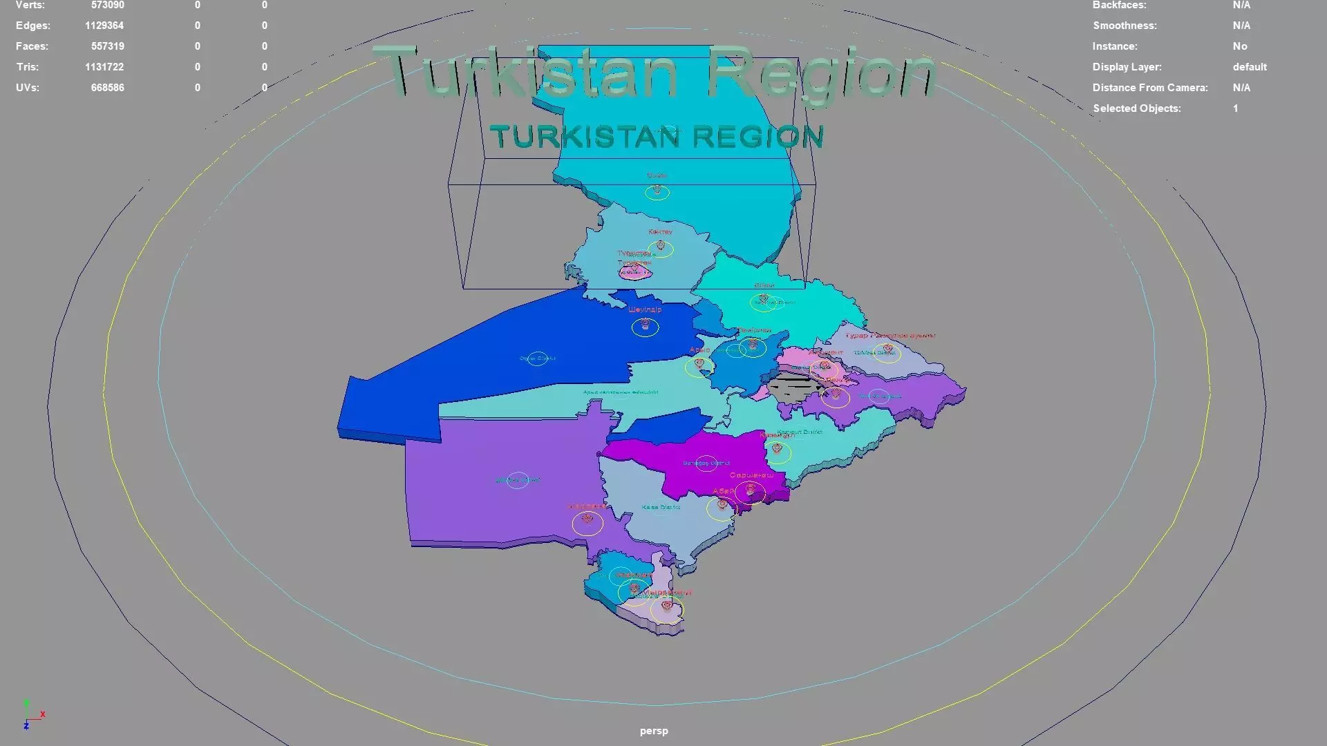 Turkistan Region regions : The model is divided according to the administrative region of Turkistan Region. Each region is clearly separated so you can easily isolate it or change the colors. Names are also editable and separate.