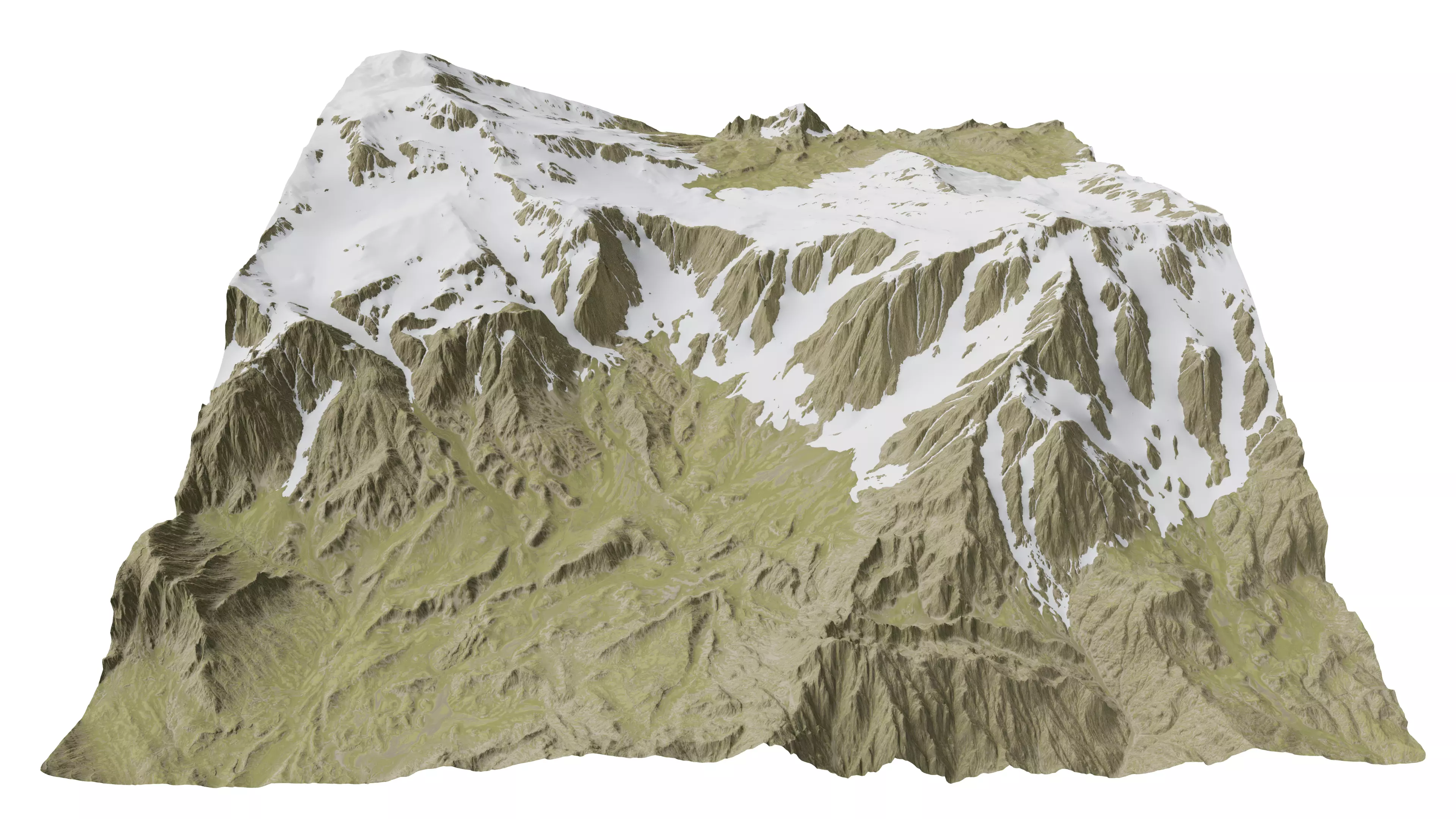 Two snowy mountains with steep slopes and a plateau 3d Model Terrain. This mountain model has 2 textures Winter and Summer (Preview image 4).