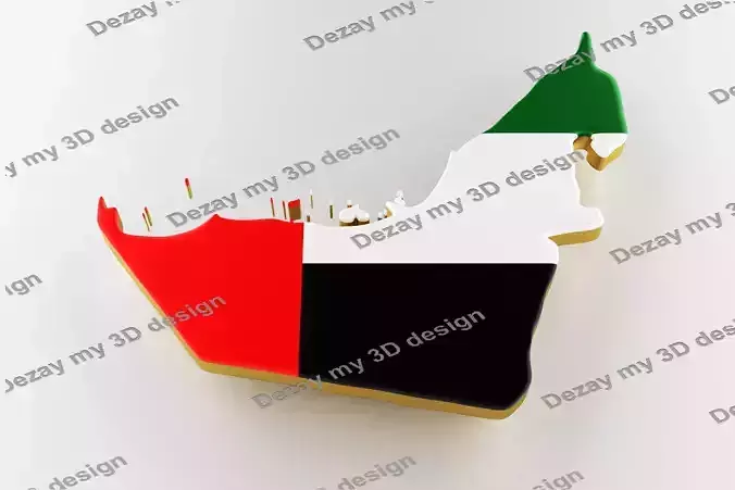 UAE map image with flag 3D model