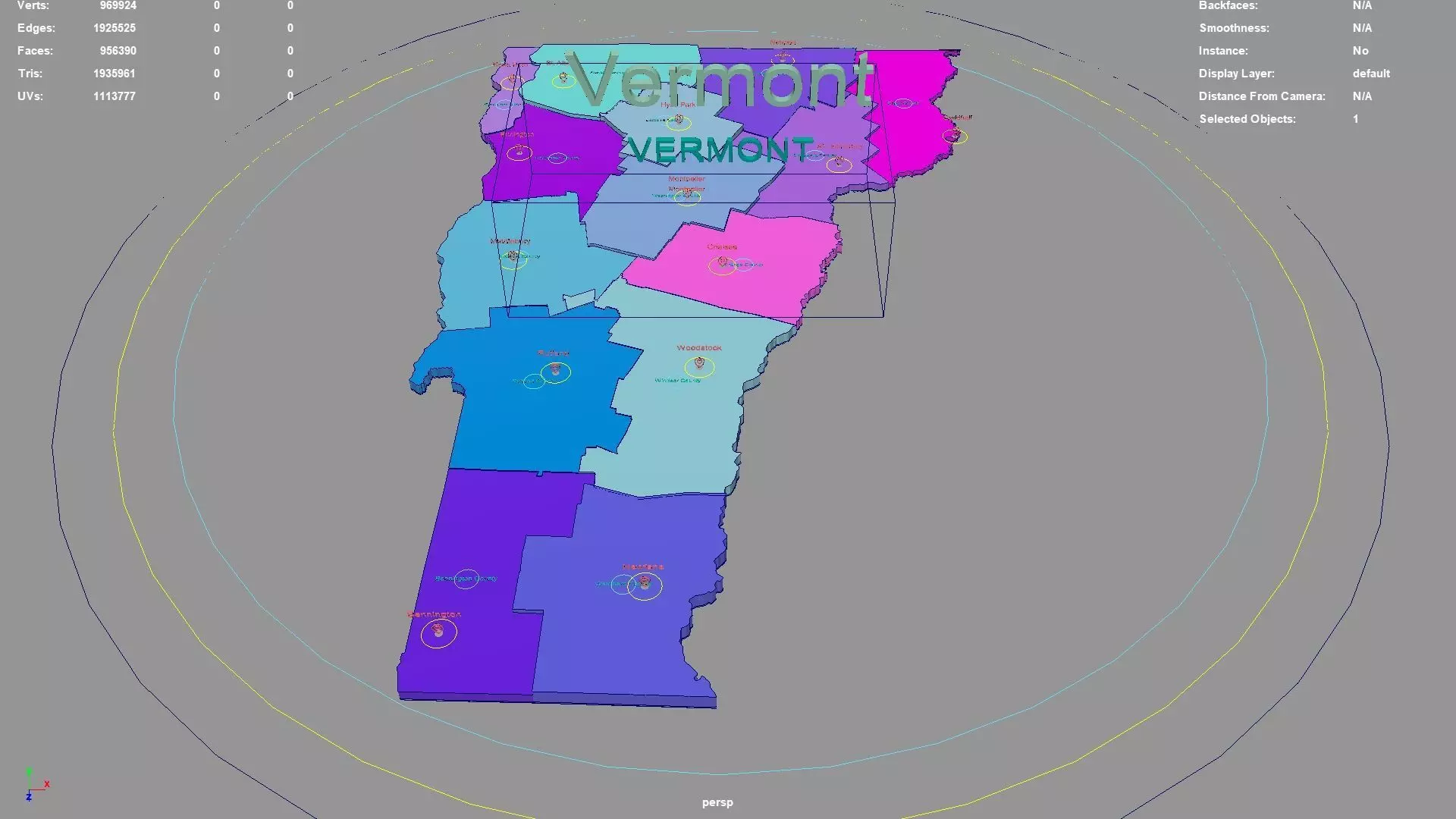 Vermont regions : The model is divided according to the administrative region of Vermont. Each region is clearly separated so you can easily isolate it or change the colors. Names are also editable and separate.