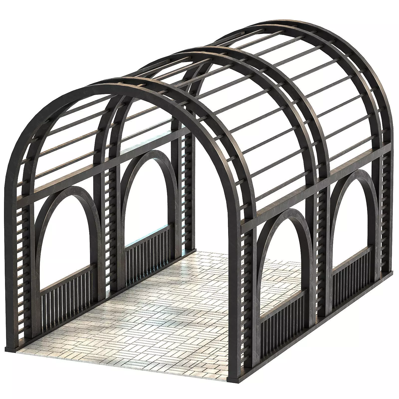 Walk Way Shade 02 is a modern architectural shading structure designed for outdoor pedestrian pathways.The model features a rhythmic metal frame with repeating arches and linear roof elements, creating a strong sense of depth, structure, and spatial continuity.