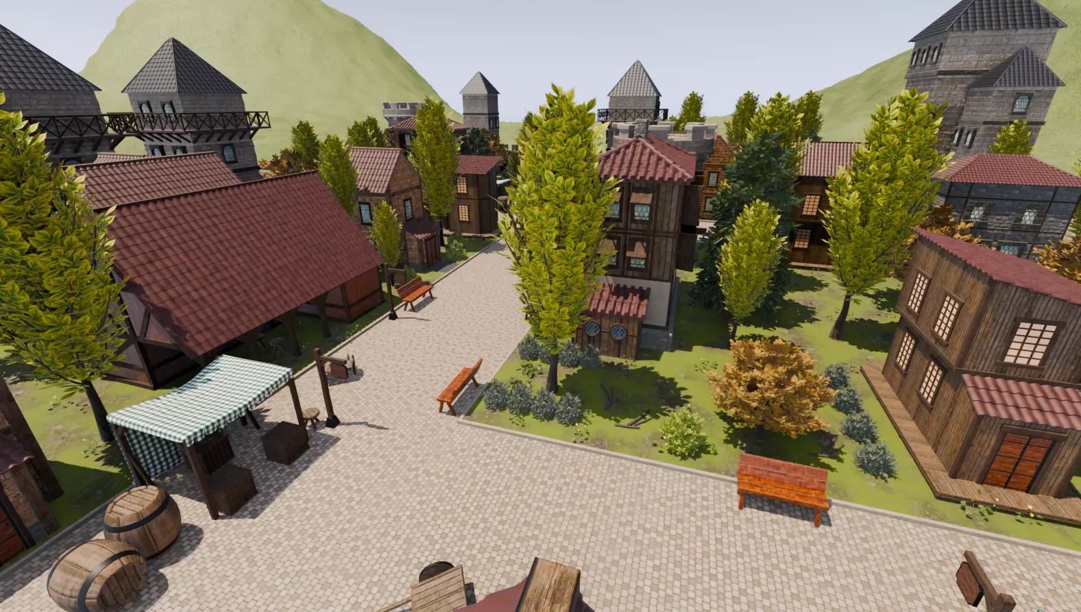 Walled Medieval Town 3D model