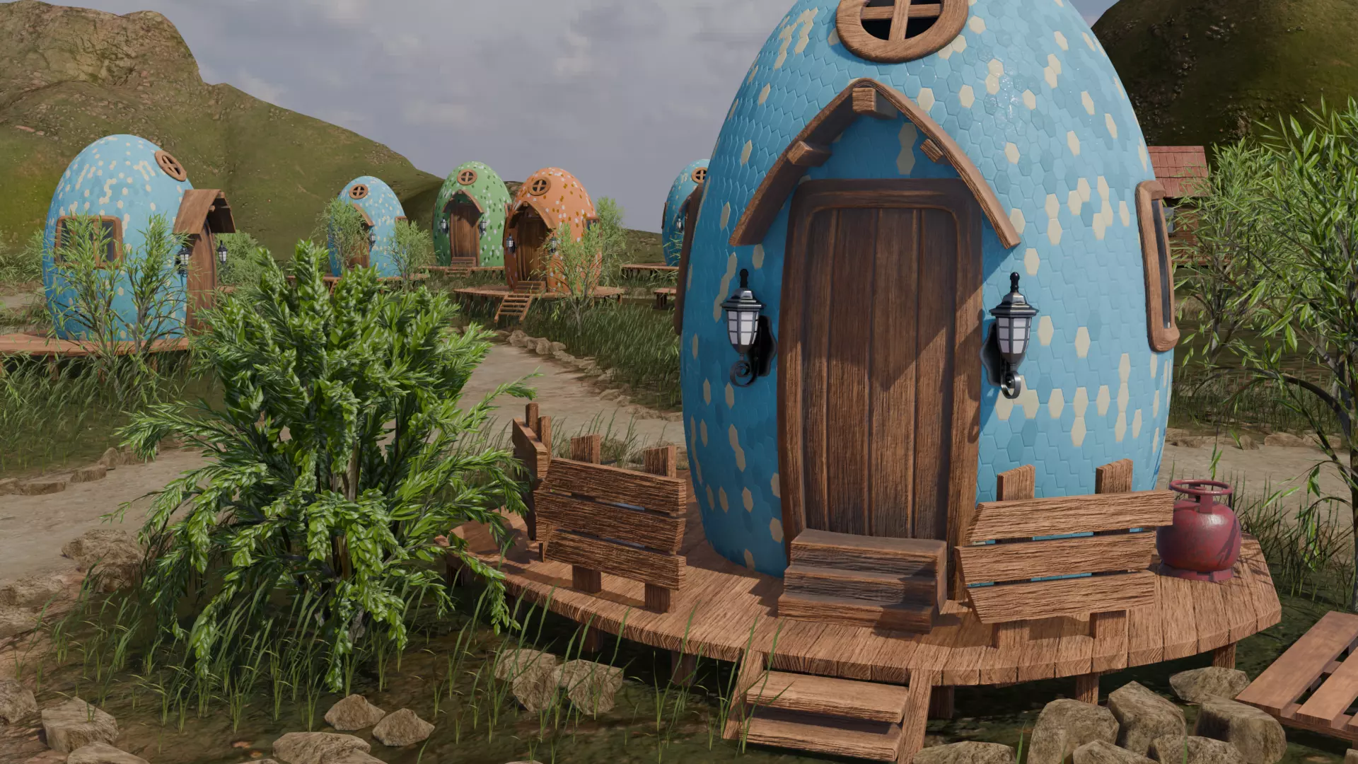 Whimsical Egg Village 3D model
