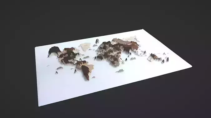 World Map Topography Low-poly 3D model
