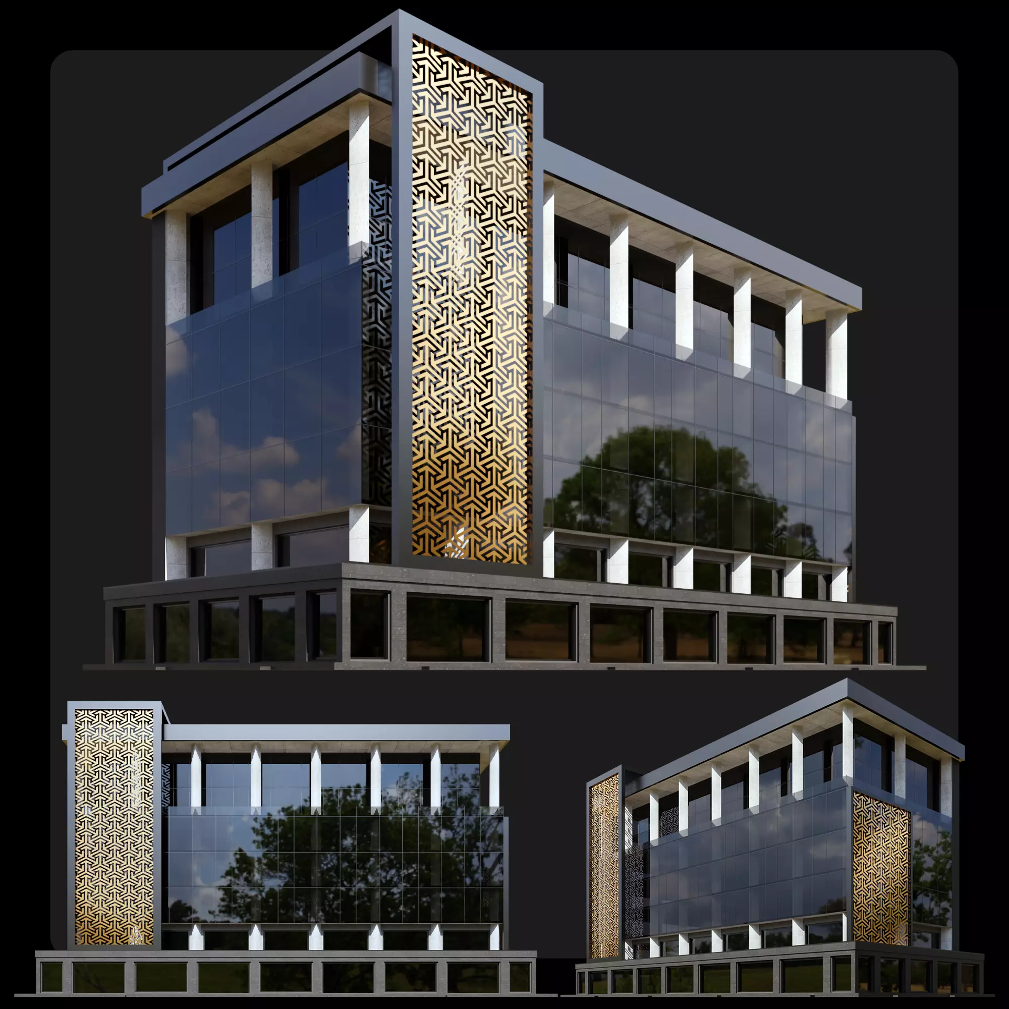The model has material settings that define how surfaces look (color, shine, transparency, etc.).