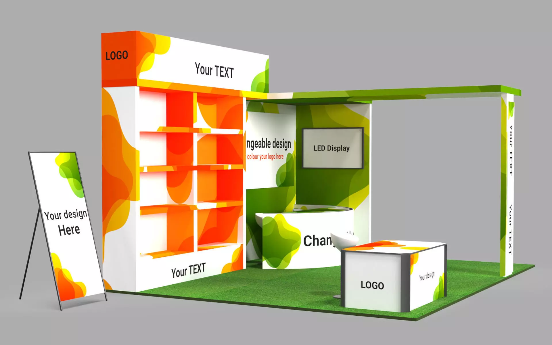 The 3D model is displayed with 6 different images from different perspectives. We have obtained the license for the texturing image that we used in the model. So, no concern regarding any copyright claim by anyone. Pick up the Expo Stand at a competitive price.