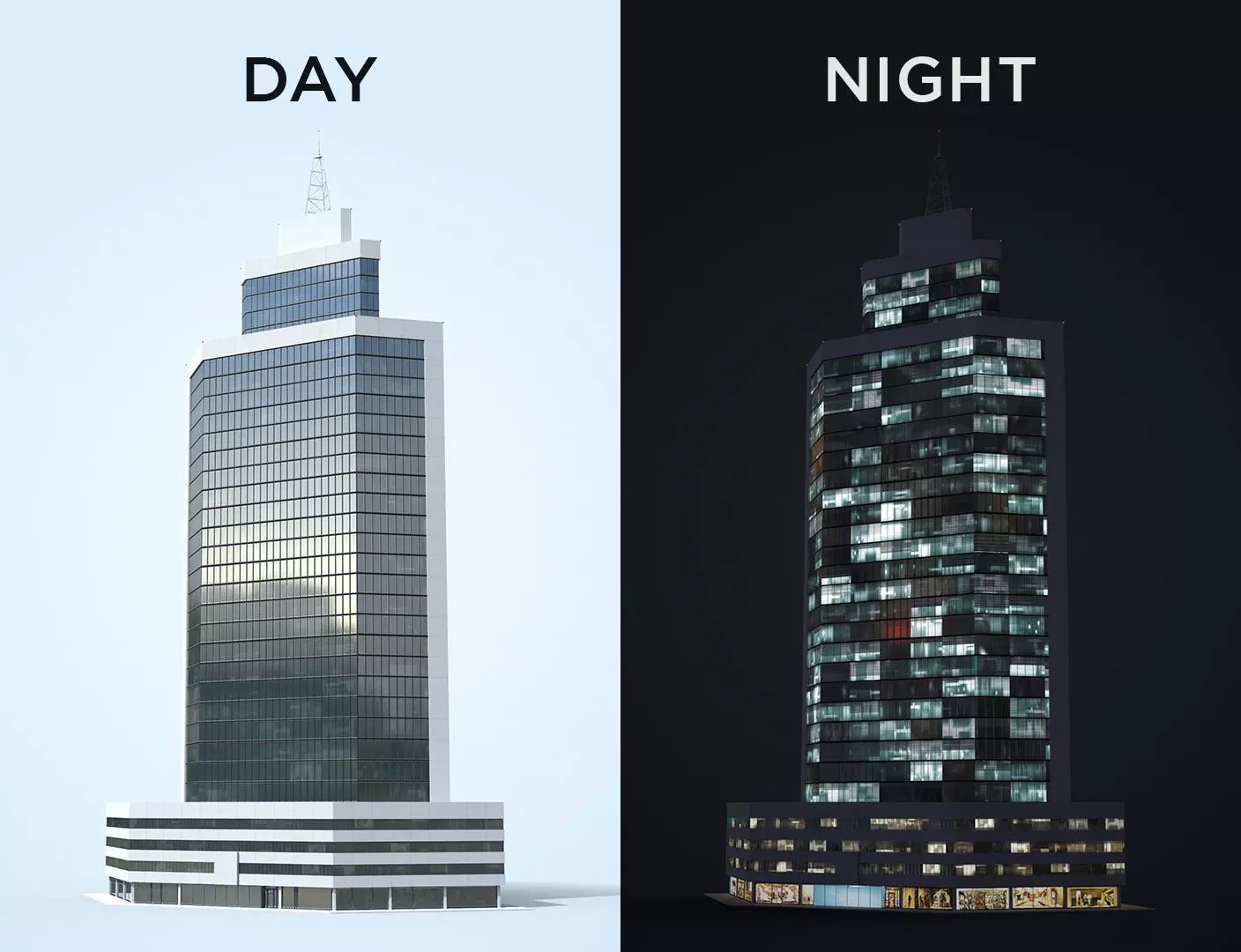 3. Windows - color, roughness, bump, normal, Self-Illumination (Emissive) Day and Night 2048x2048px