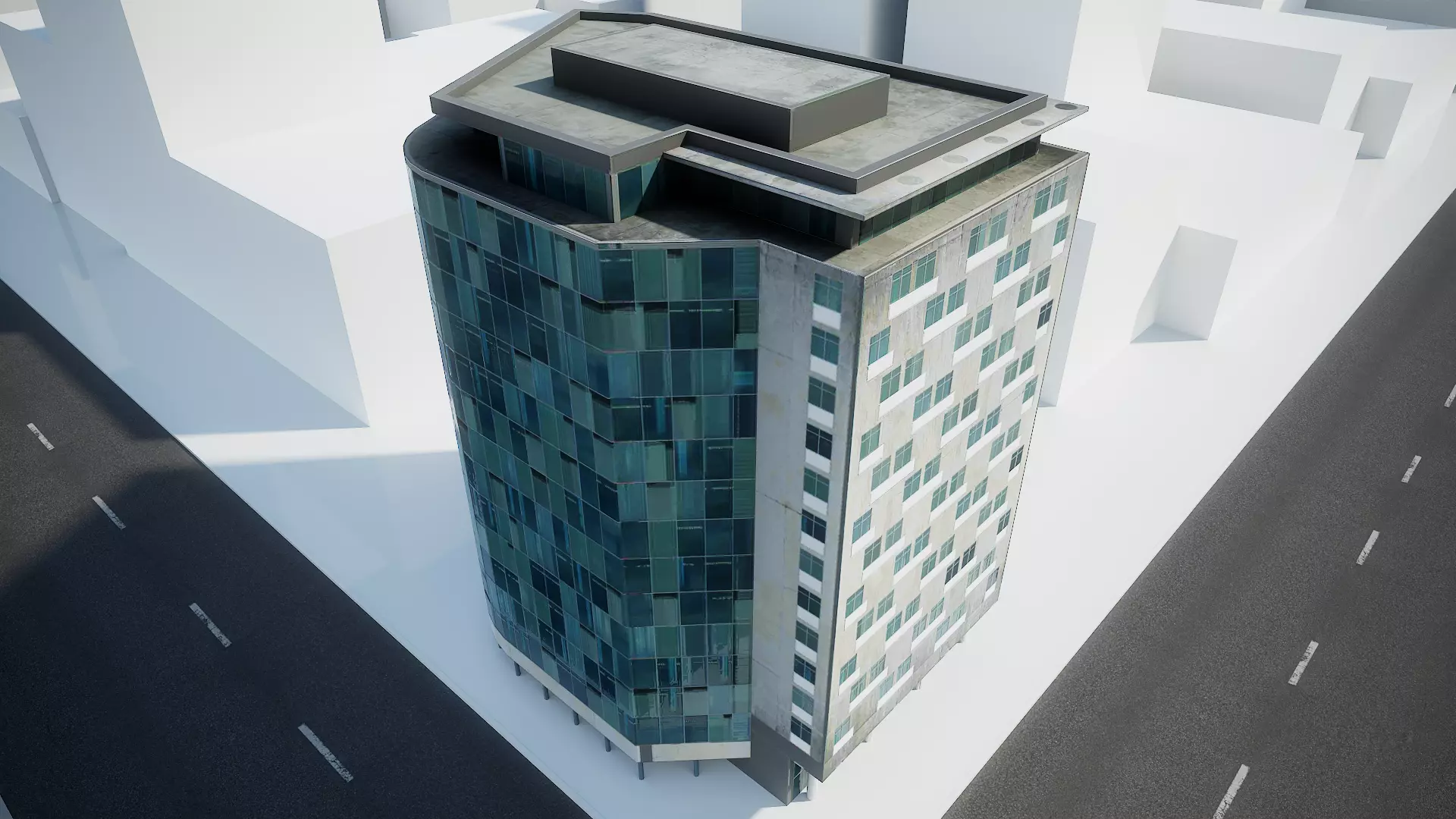 14-levels office building with glass and concrete facades